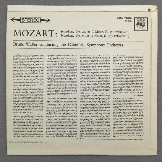 J703 Mozart Symphonies No.41 & No.35 Walter CBS SBRG 72005 Stereo