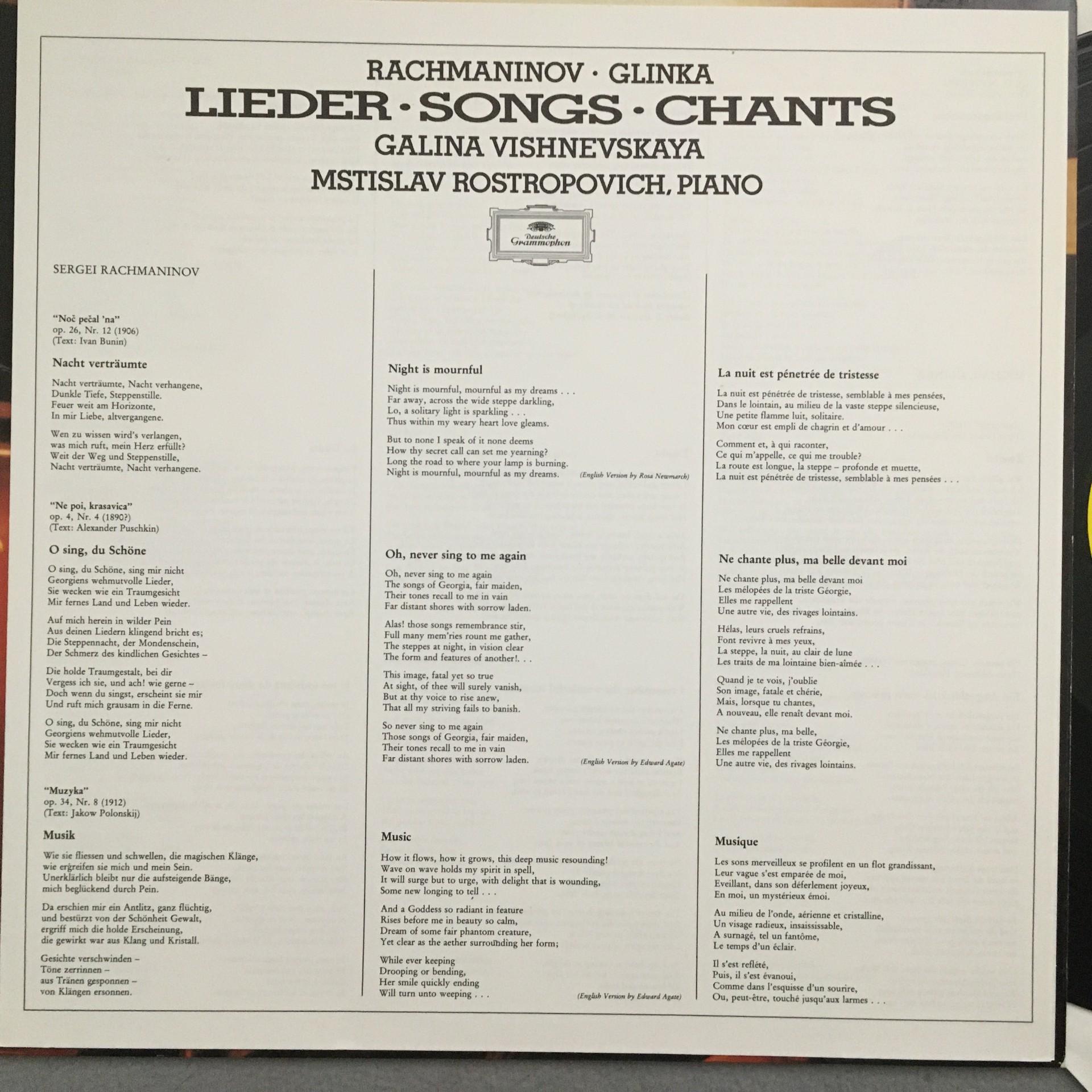 U036 Rachmaninov Glinka Songs Vishnevskaya Rostropovich DGG 2530 725 Stereo
