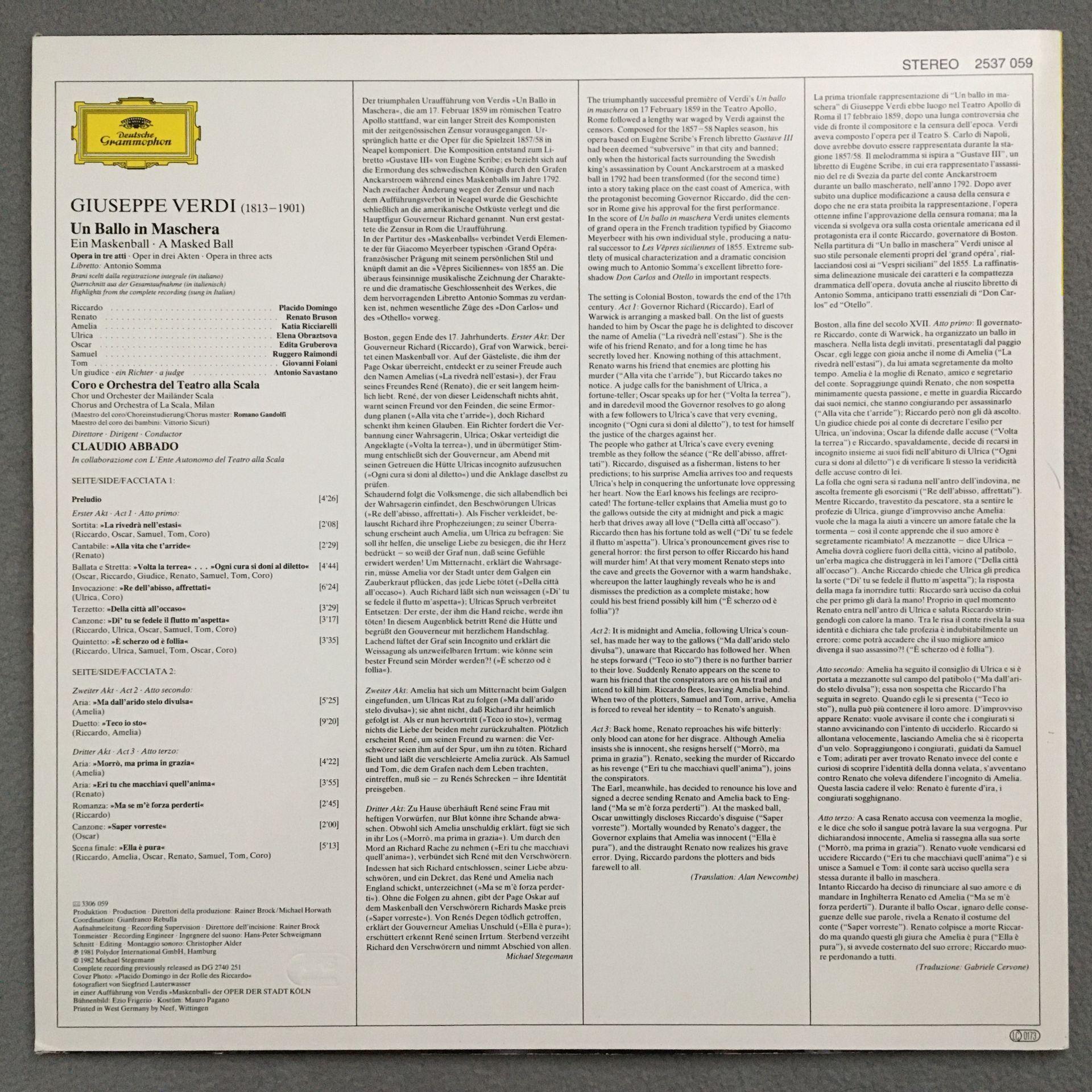 U045 Verdi Un Ballo in Maschera Domingo Ricciarelli Abbado DGG 2537 059 Stereo