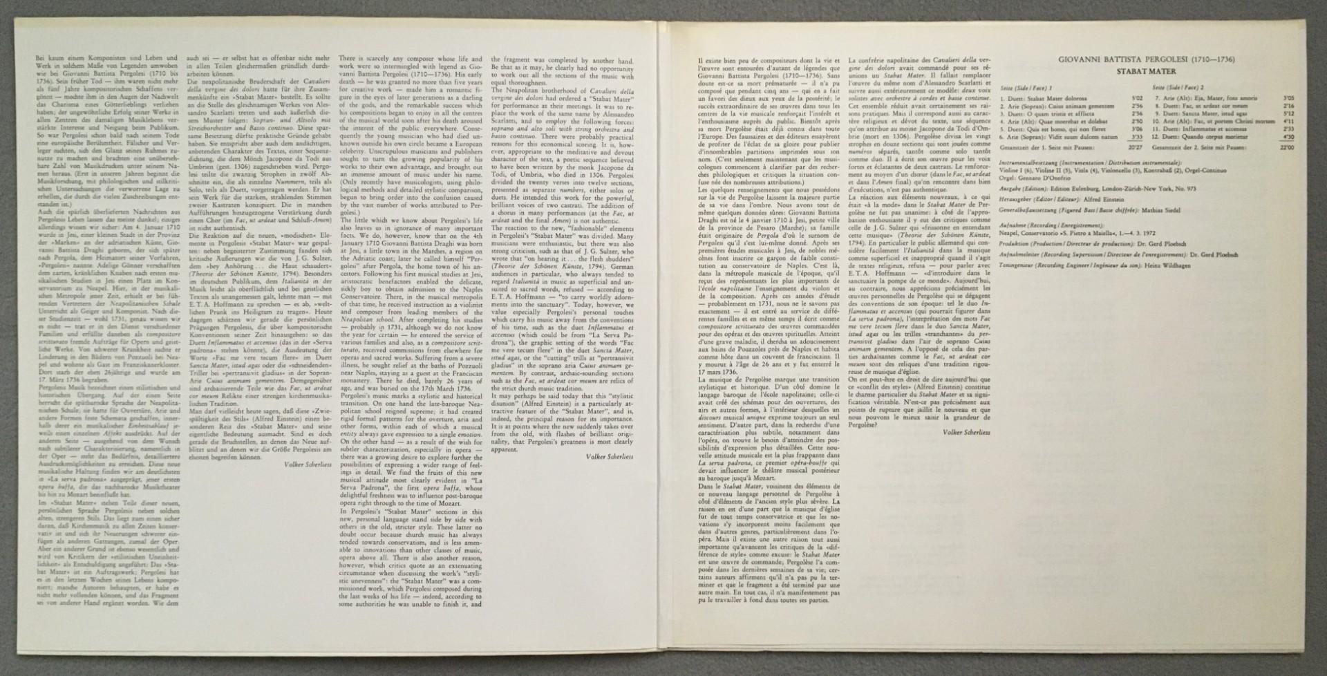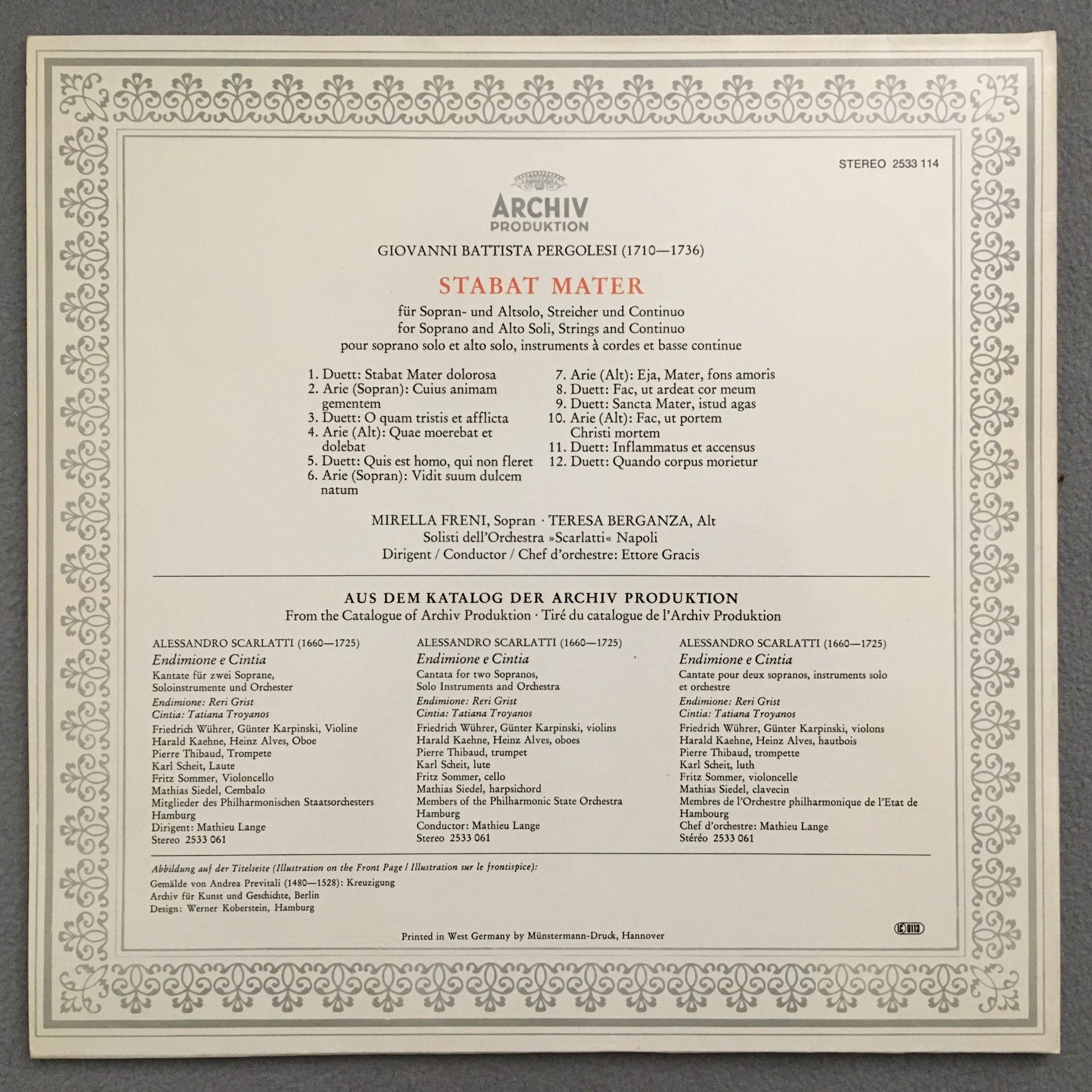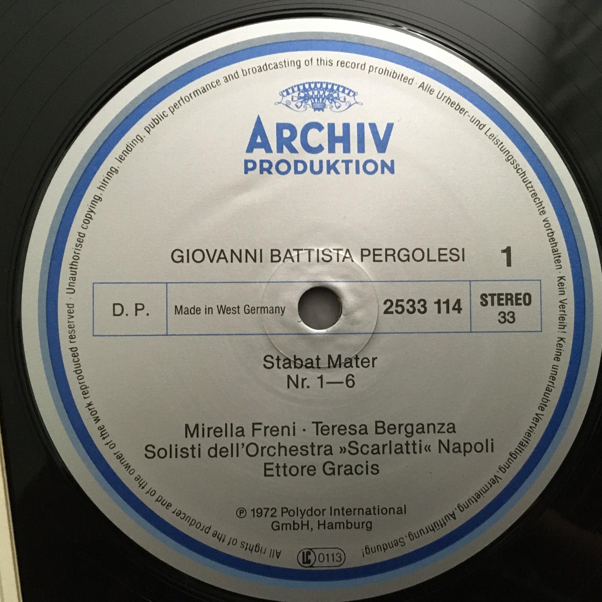 U047 Pergolesi Stabat Mater Freni Berganza Gracis DGG Archiv 2533 114 Stereo