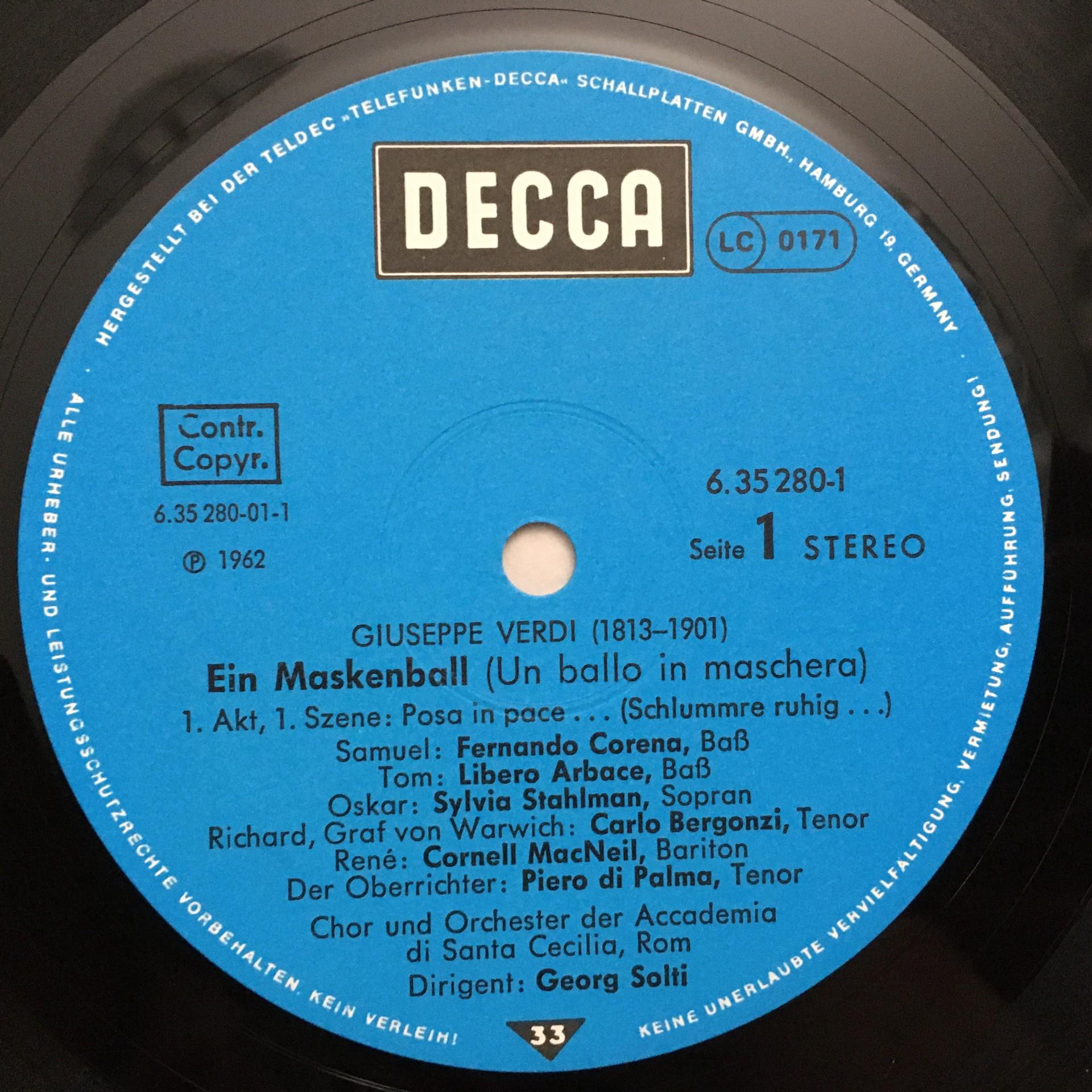 E422 Verdi Ballo in Maschera Bergonzi Nilsson Solti 3LP DECCA 6.35280 EK Stereo