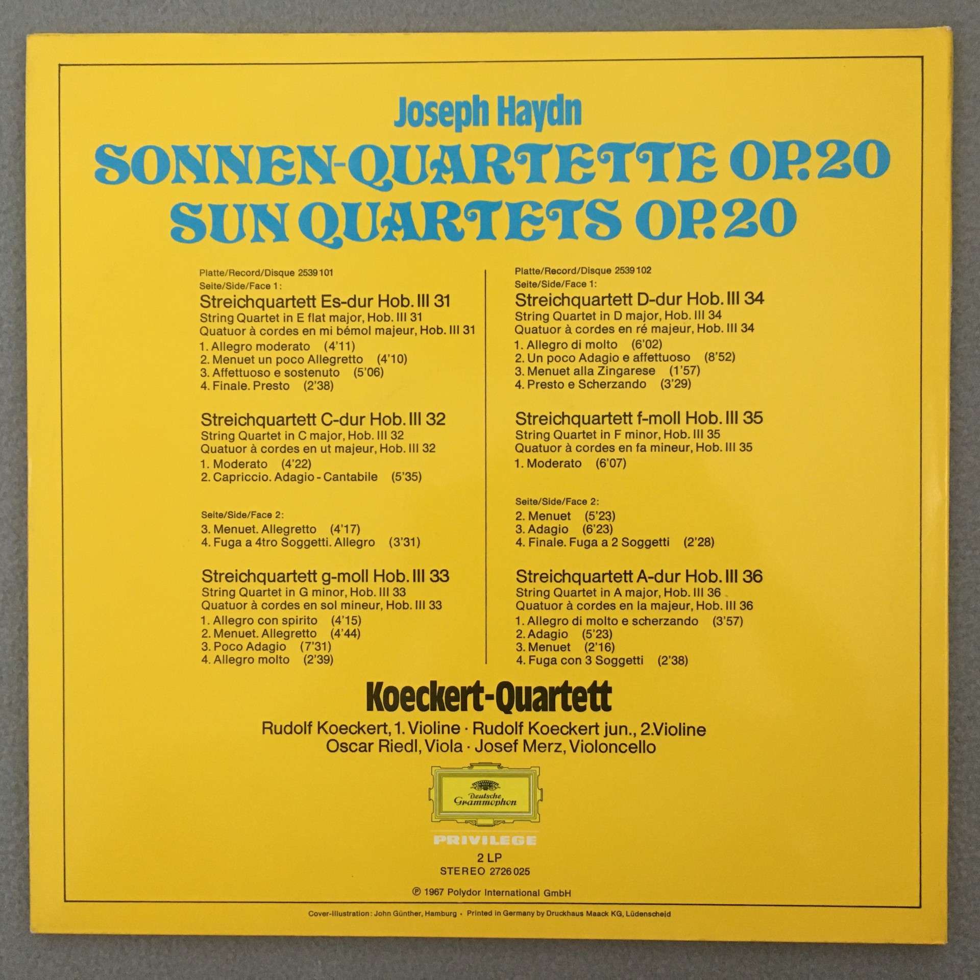 J704 Haydn Sun Quartets Op.20 Koeckert Quartet 2LP DGG 2726 025 Stereo