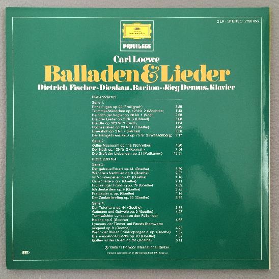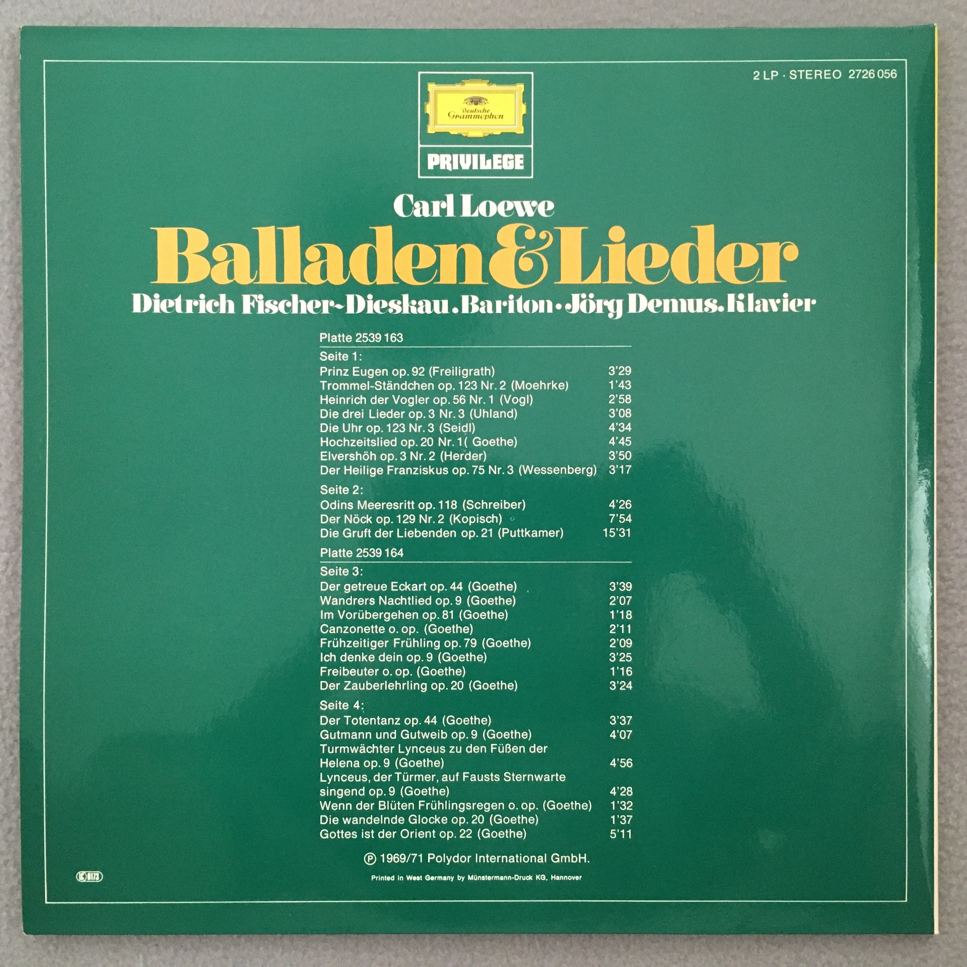J706 Loewe Ballades & Songs Fischer-Dieskau Demus 2LP DGG 2726 056 Stereo