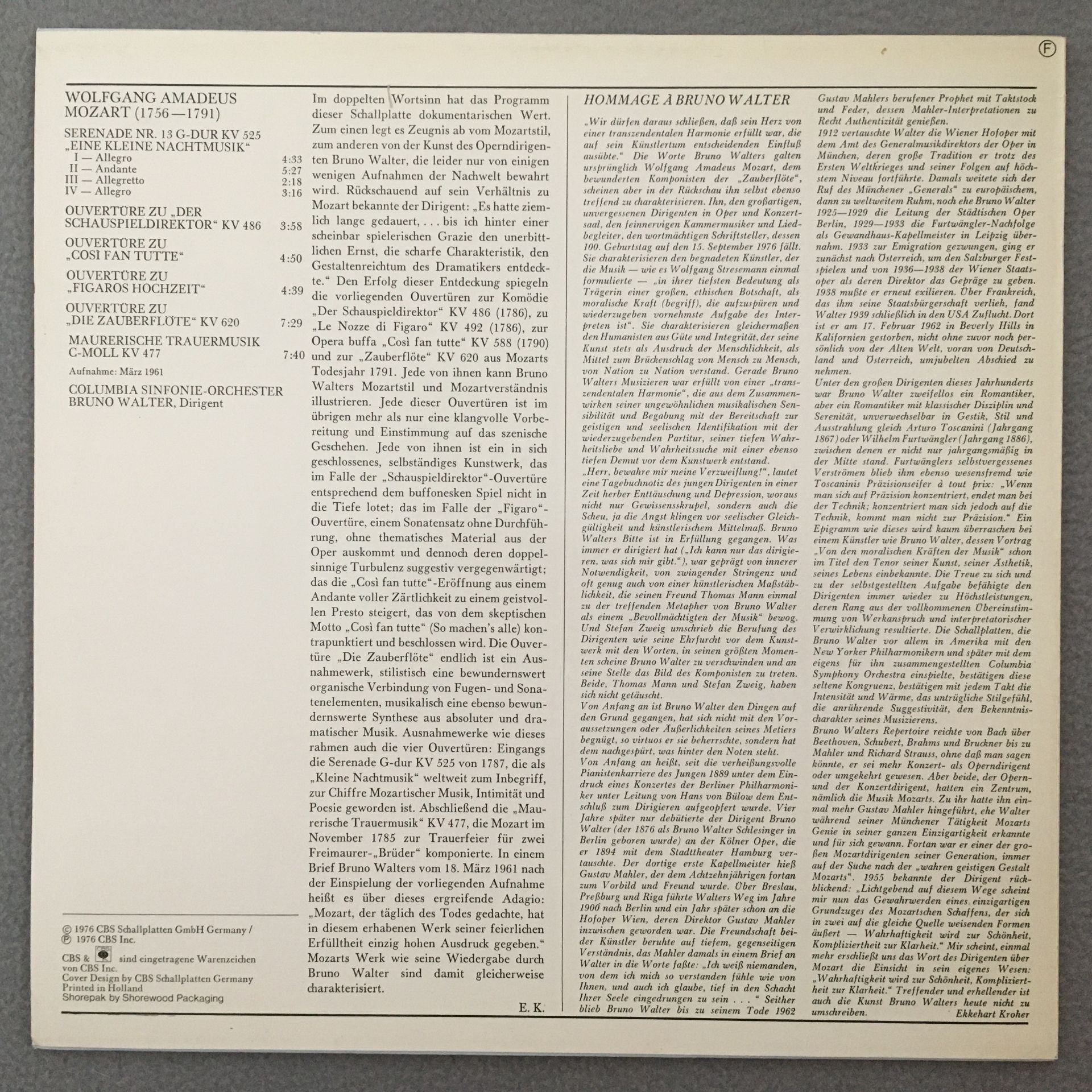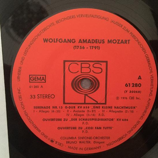 J710 Mozart Serenata Ouvertures Walter Edition CBS 61 280 Stereo