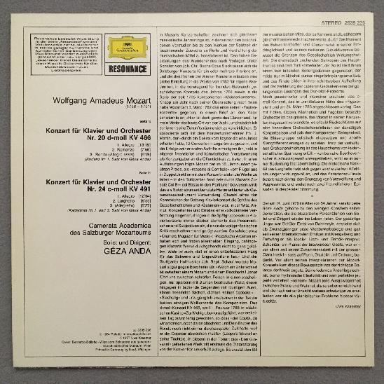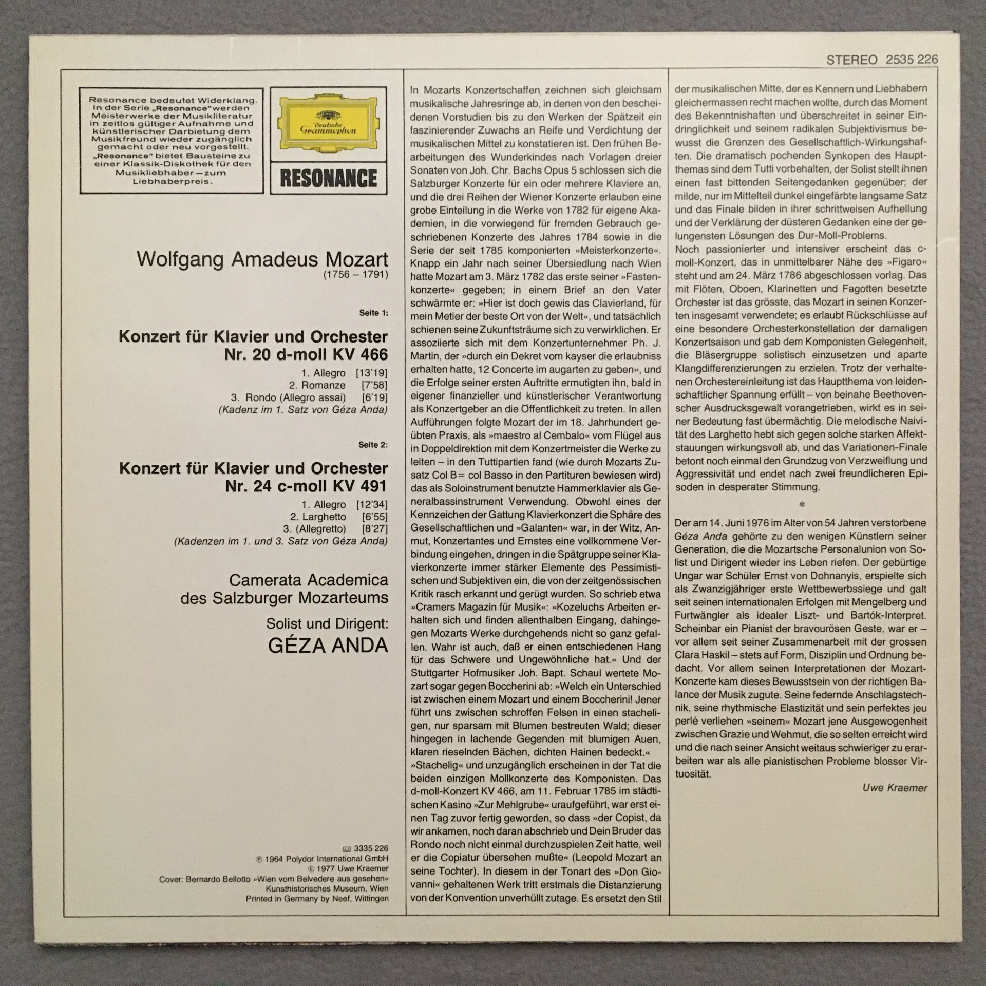 J739 Mozart Piano Concertos No.20 & No.24 Anda DGG 2535 226 Stereo