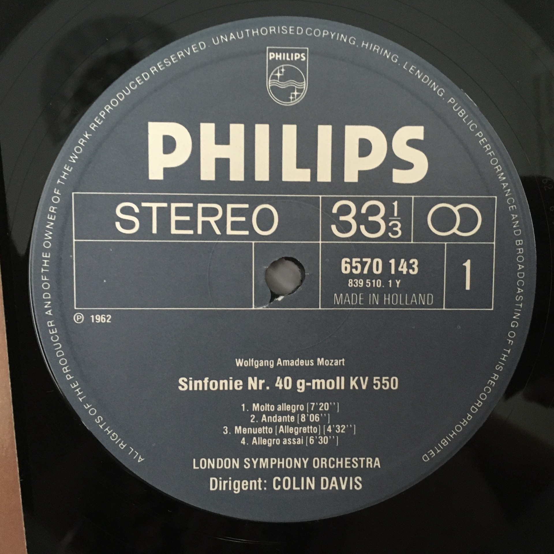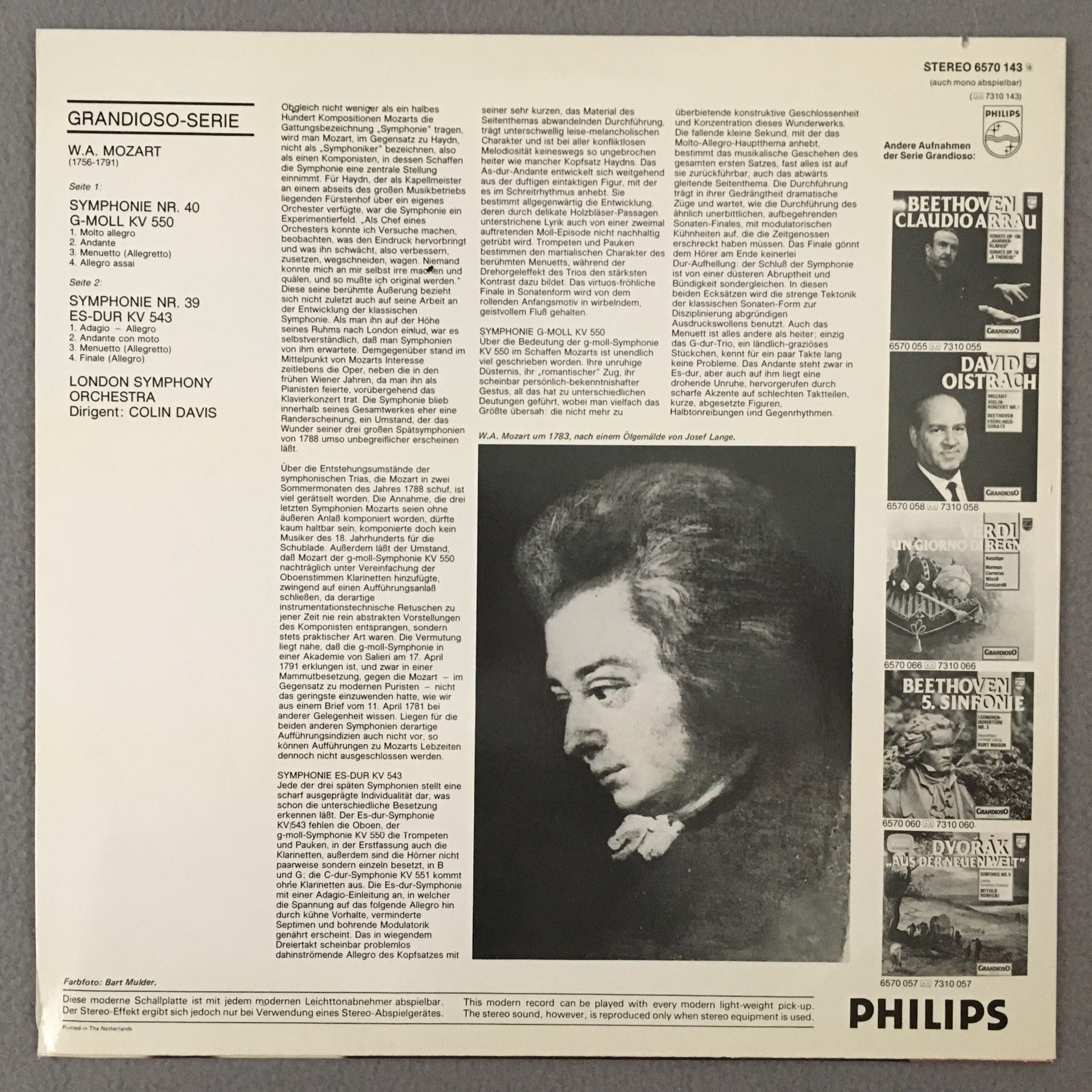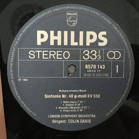 R485 Mozart Symphonies No.40 & No.39 Davis Philips 6570 143 Stereo