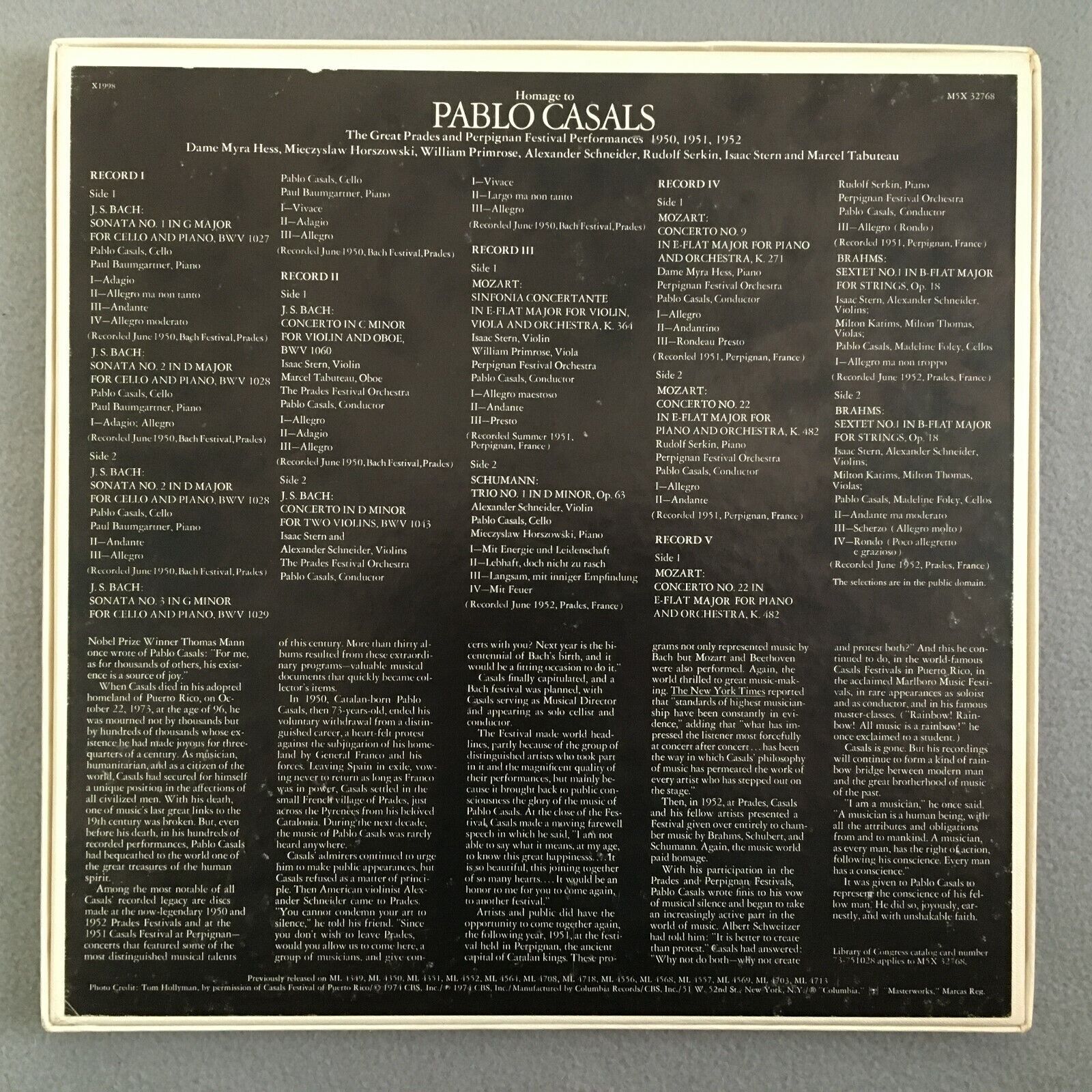 B153 Hommage to Pablo Casals Serkin Schneider 5LP Columbia M5X 32768