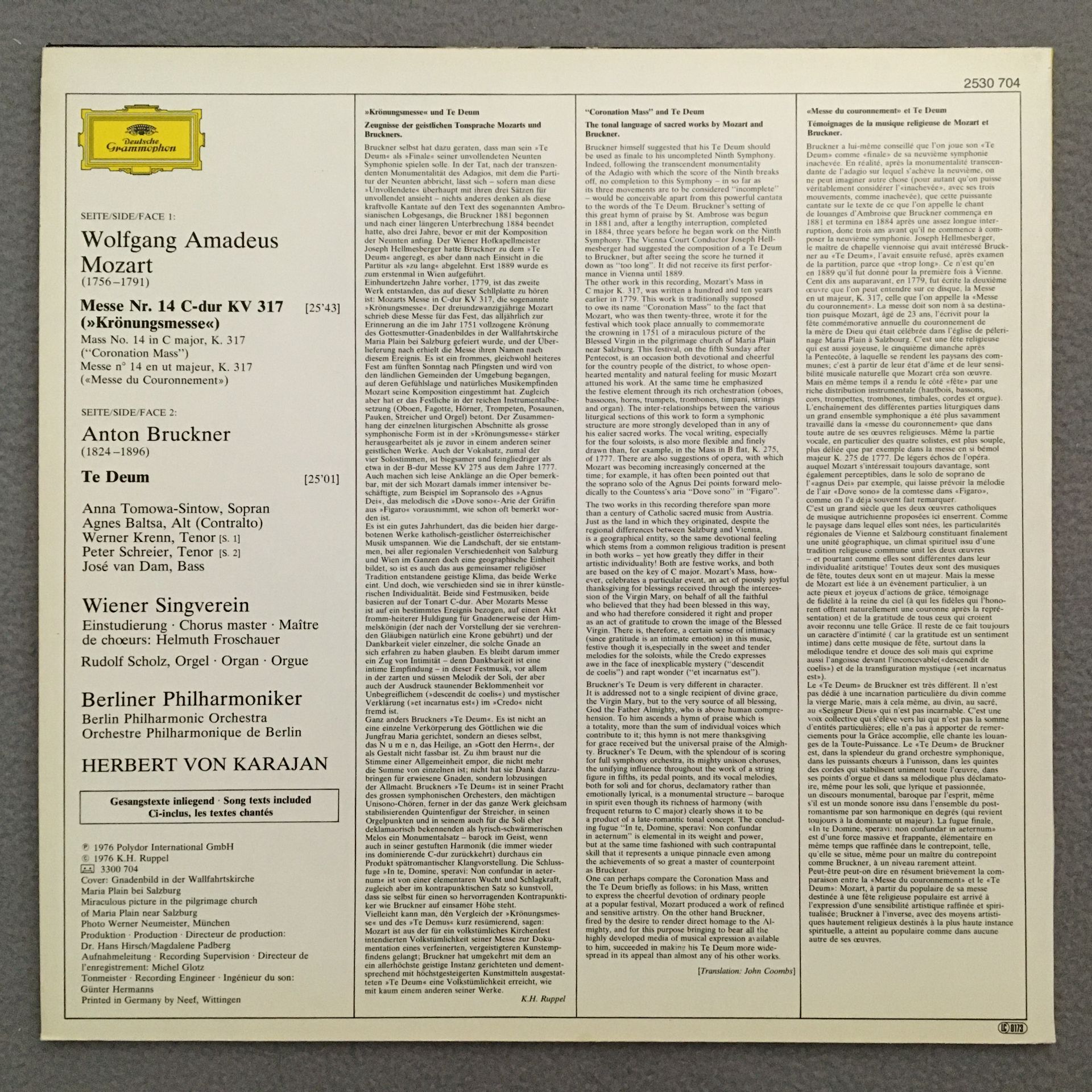 J762 Mozart Coronation Mass Baltsa Schreier Van Damm Karajan DGG 2530 704 Stereo
