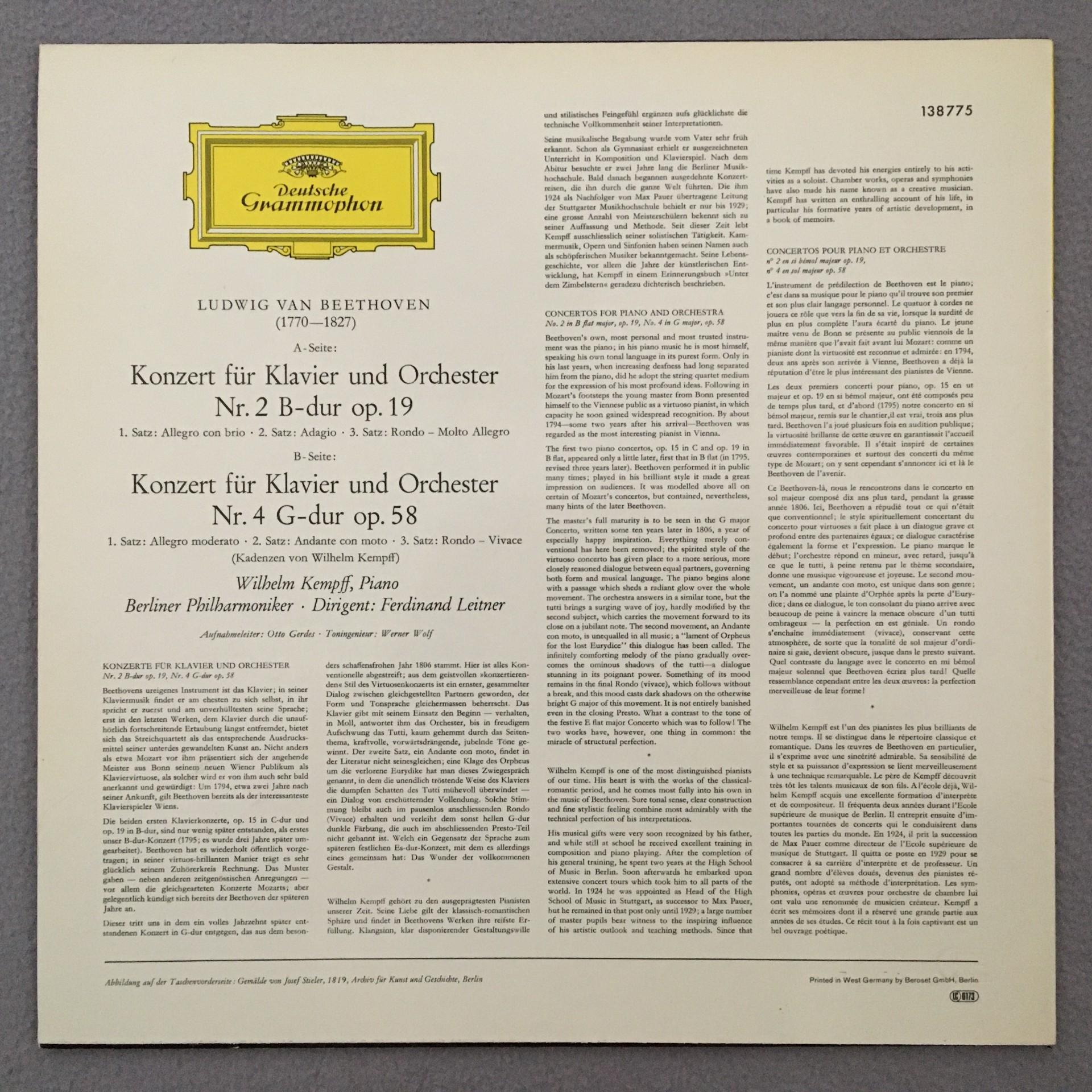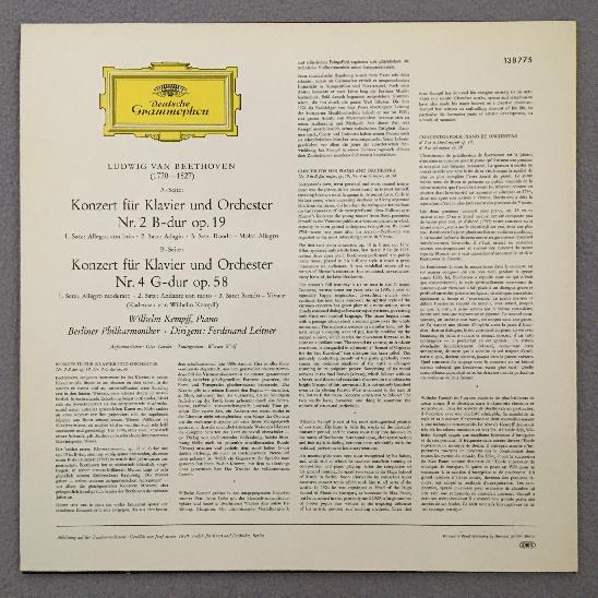J782 Beethoven Piano Concertos Kempff Leitner BPO DGG 138 775 Stereo
