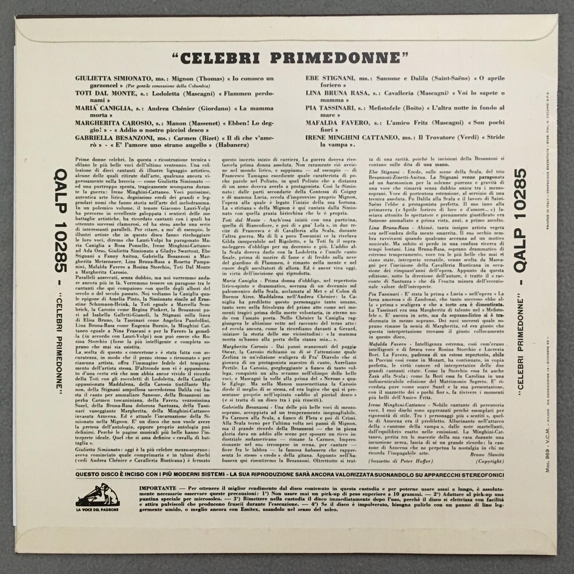 U064 Celebri Primedonne Simionato Stignani HMV QALP 10285