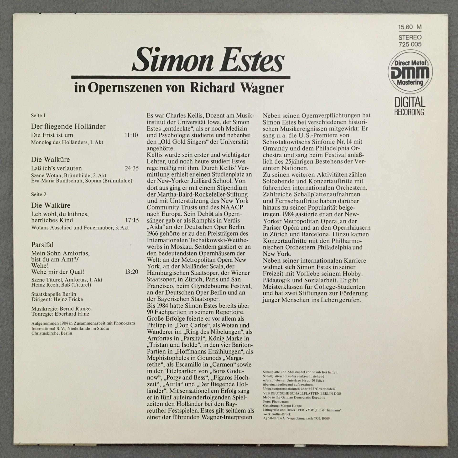 U066 Wagner Opera Scenes Estes Fricke Eterna 725 005 Digital Stereo