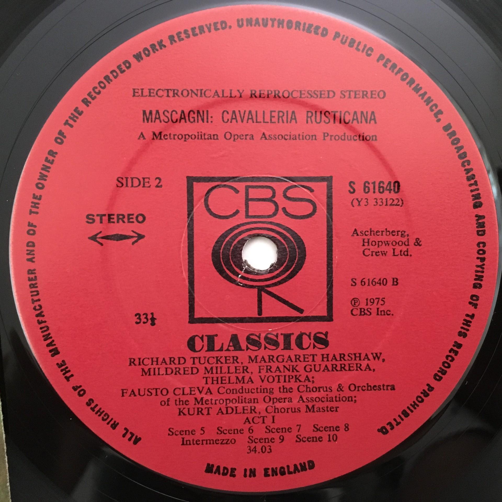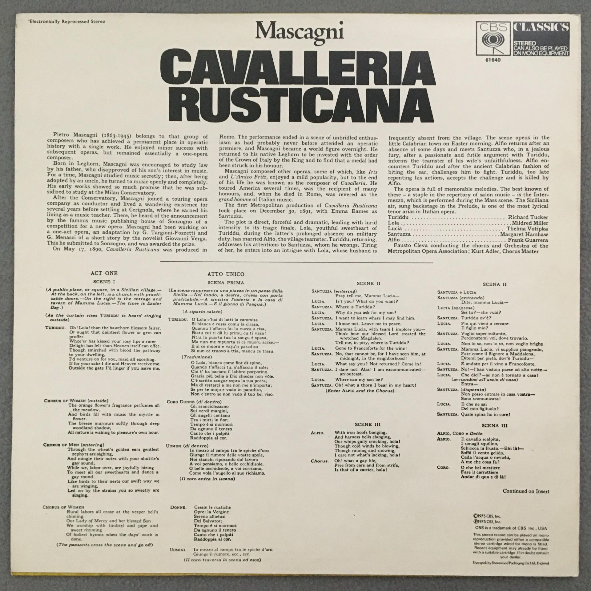 U072 Mascagni Cavalleria Rusticana Tucker Miller CBS 61640 Stereo