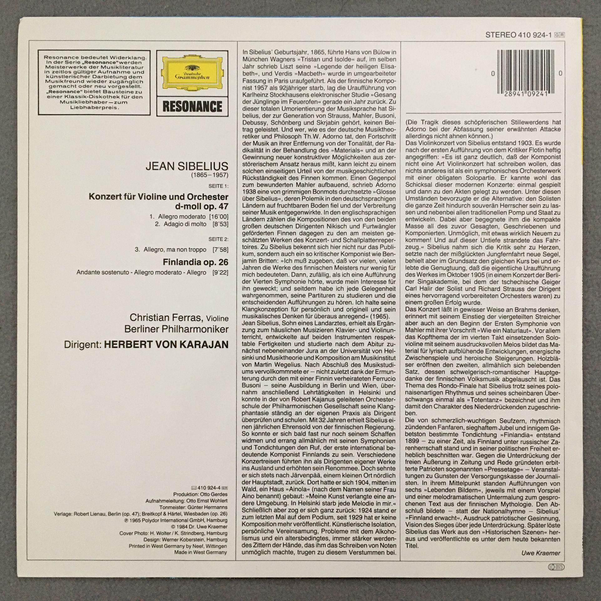 U075 Sibelius Violin Concerto Finlandia Ferras Karajan DGG 138 961 Stereo