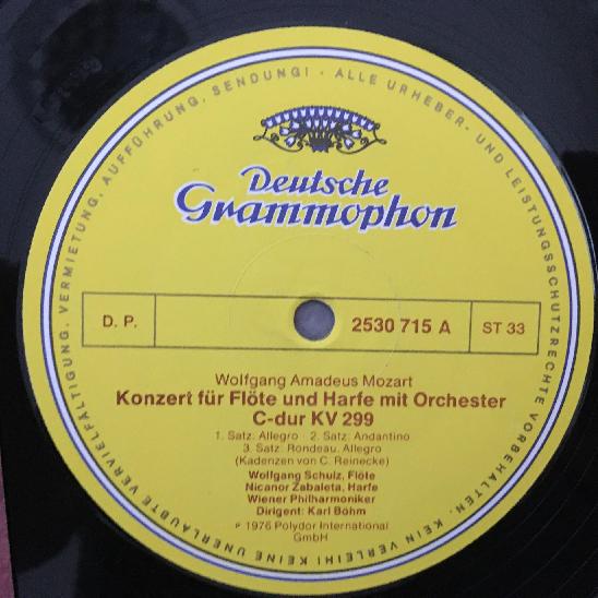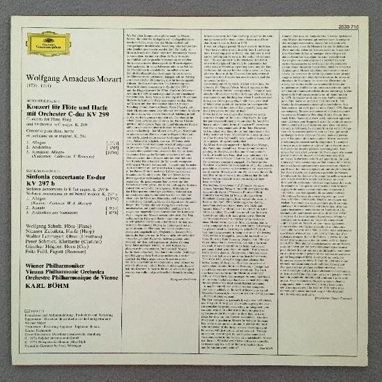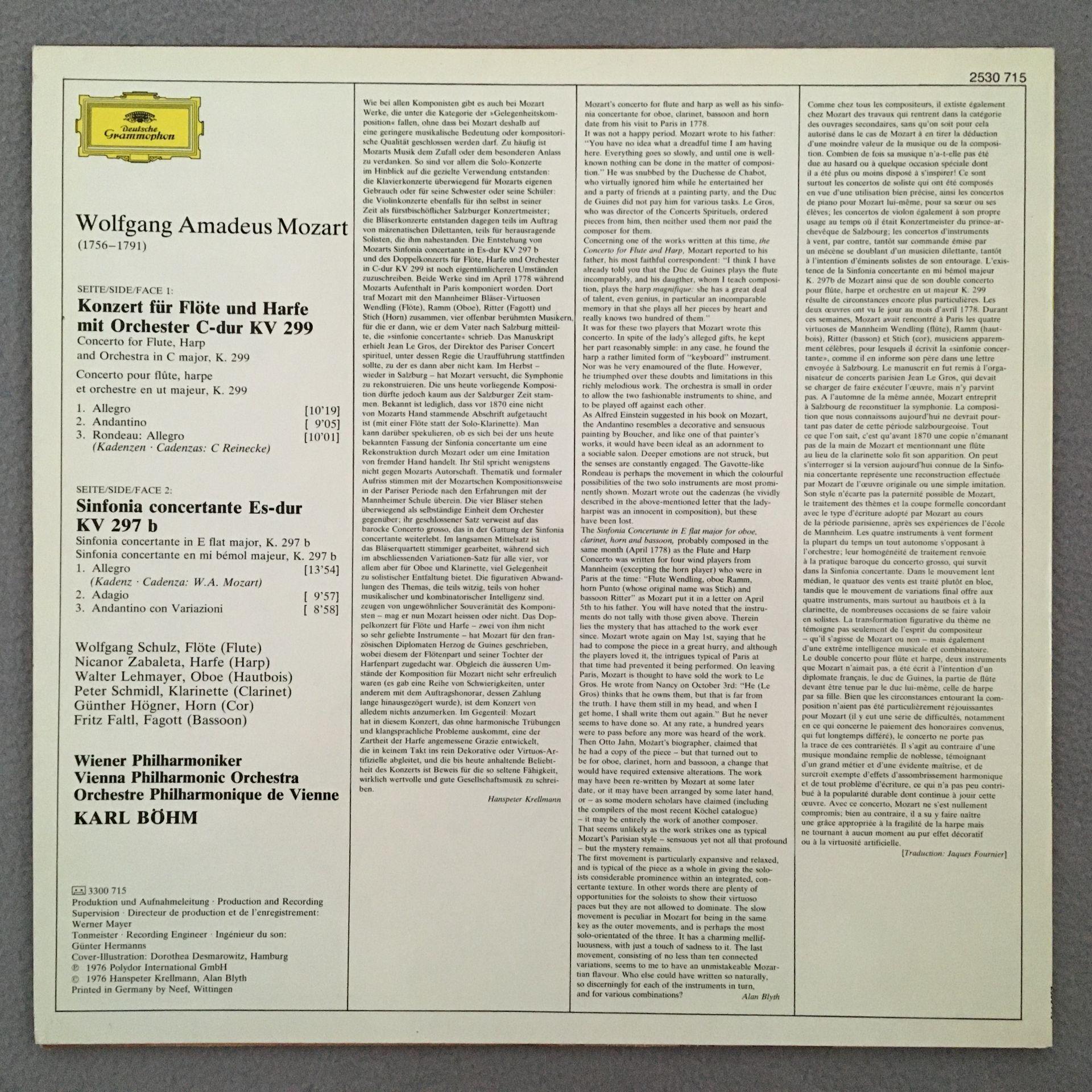 J791 Mozart Flute & Harp Concerto Zabaleta Schulz Bohm VPO DGG 2530 715 Stereo