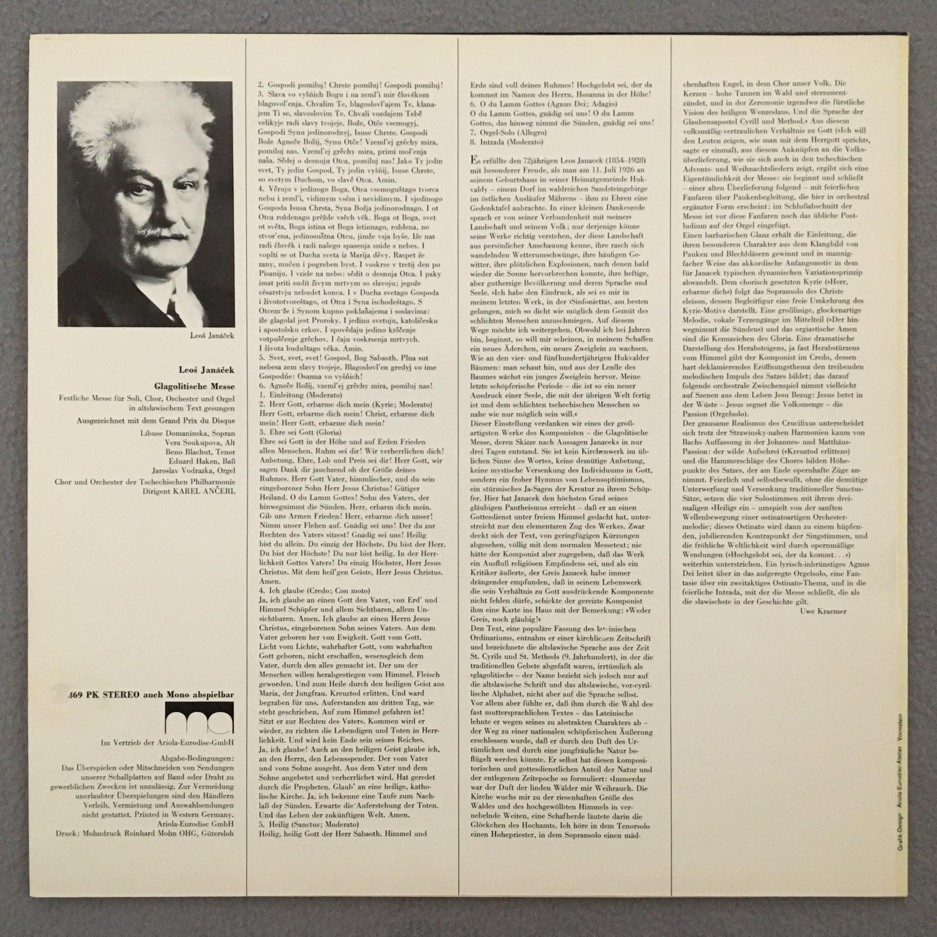 J798 Janacek Glagolitic Mass Ancerl Supraphon 80 369 PK Stereo