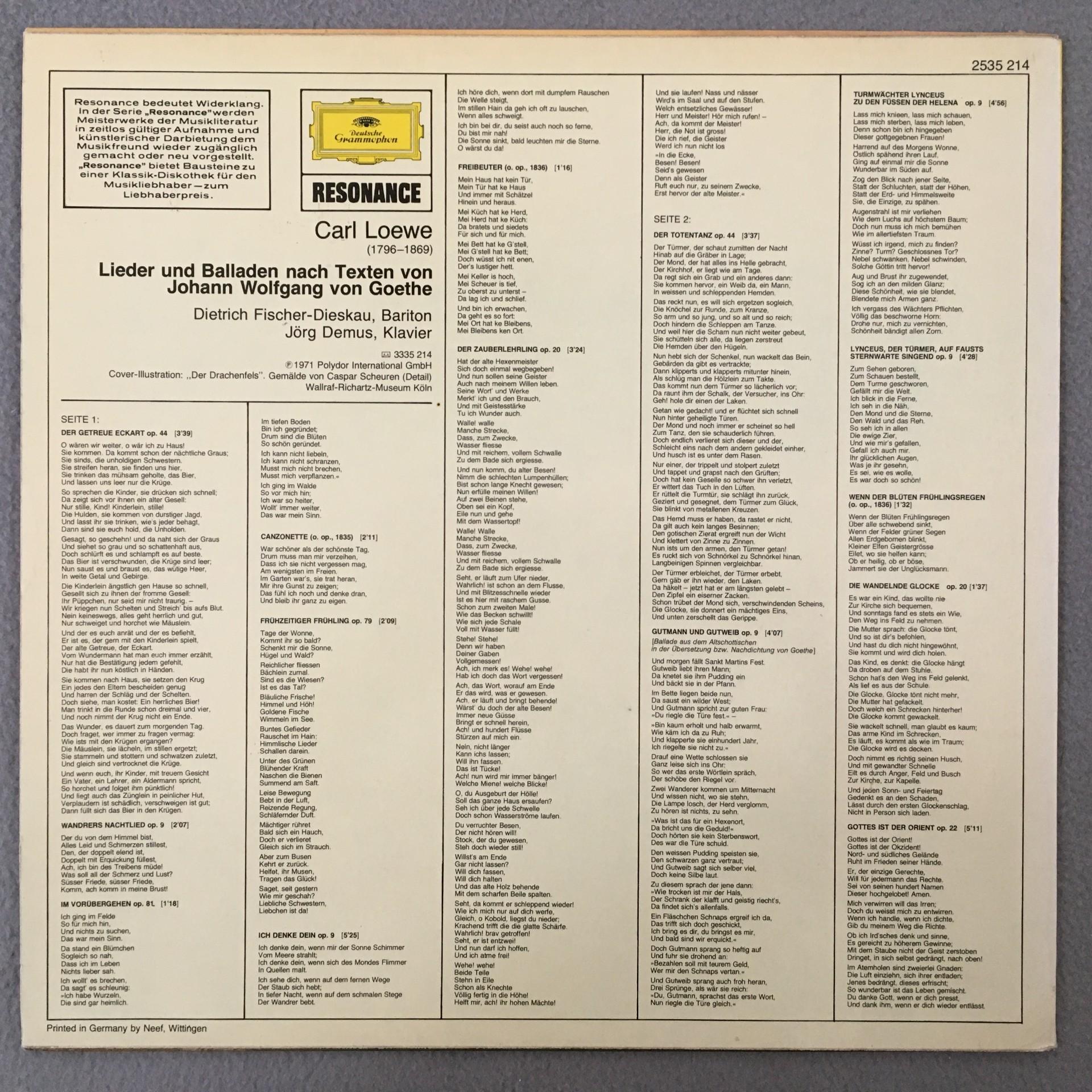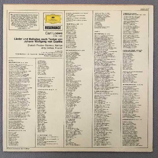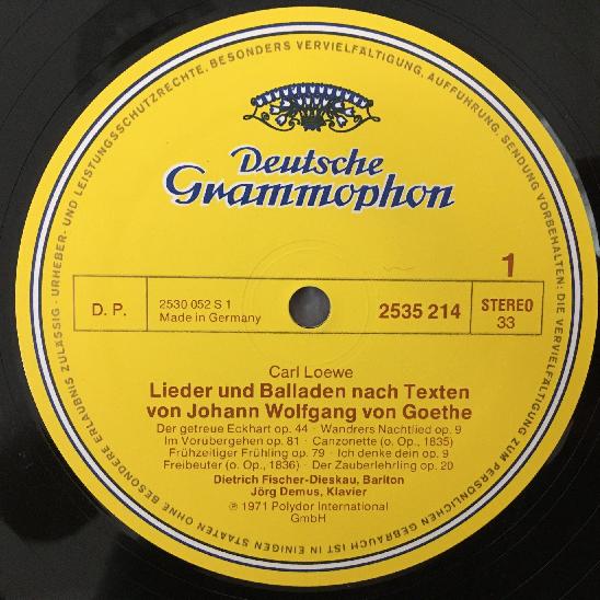 J814 Loewe Ballades & Songs Fischer-Dieskau Demus DGG 2535 214 Stereo