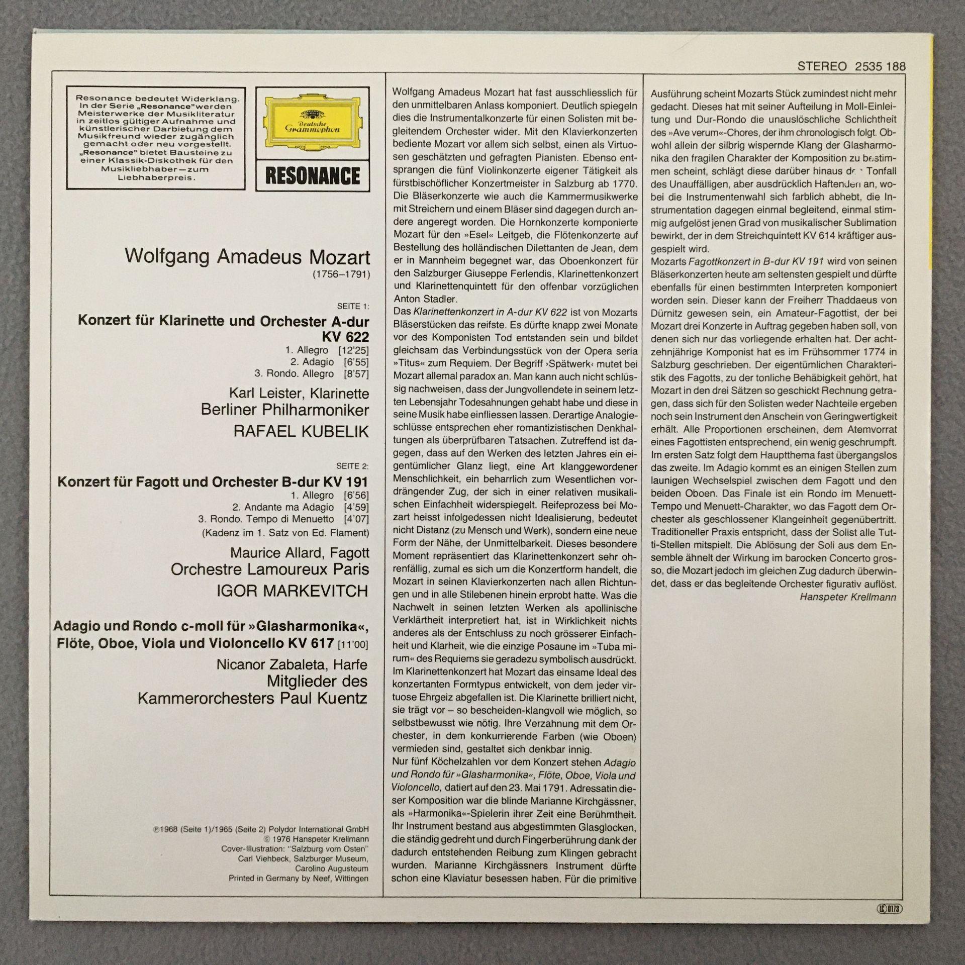 J820 Mozart Concertos Leister Allard Zabaleta DGG 2535 188 Stereo