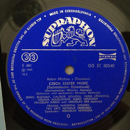 J823 Czech Easter Music Zach Tuma Venhoda Supraphon GS ST 50540 Stereo