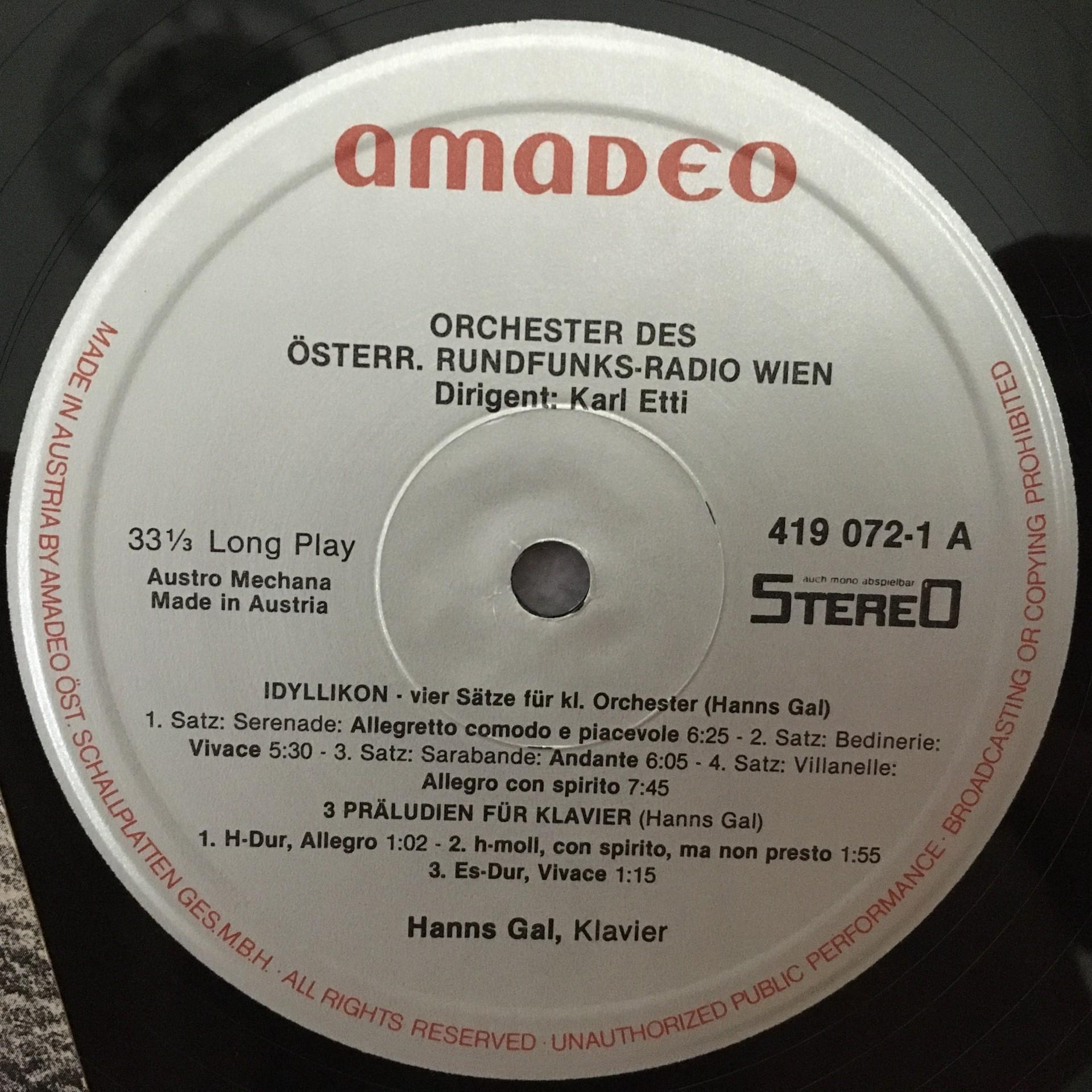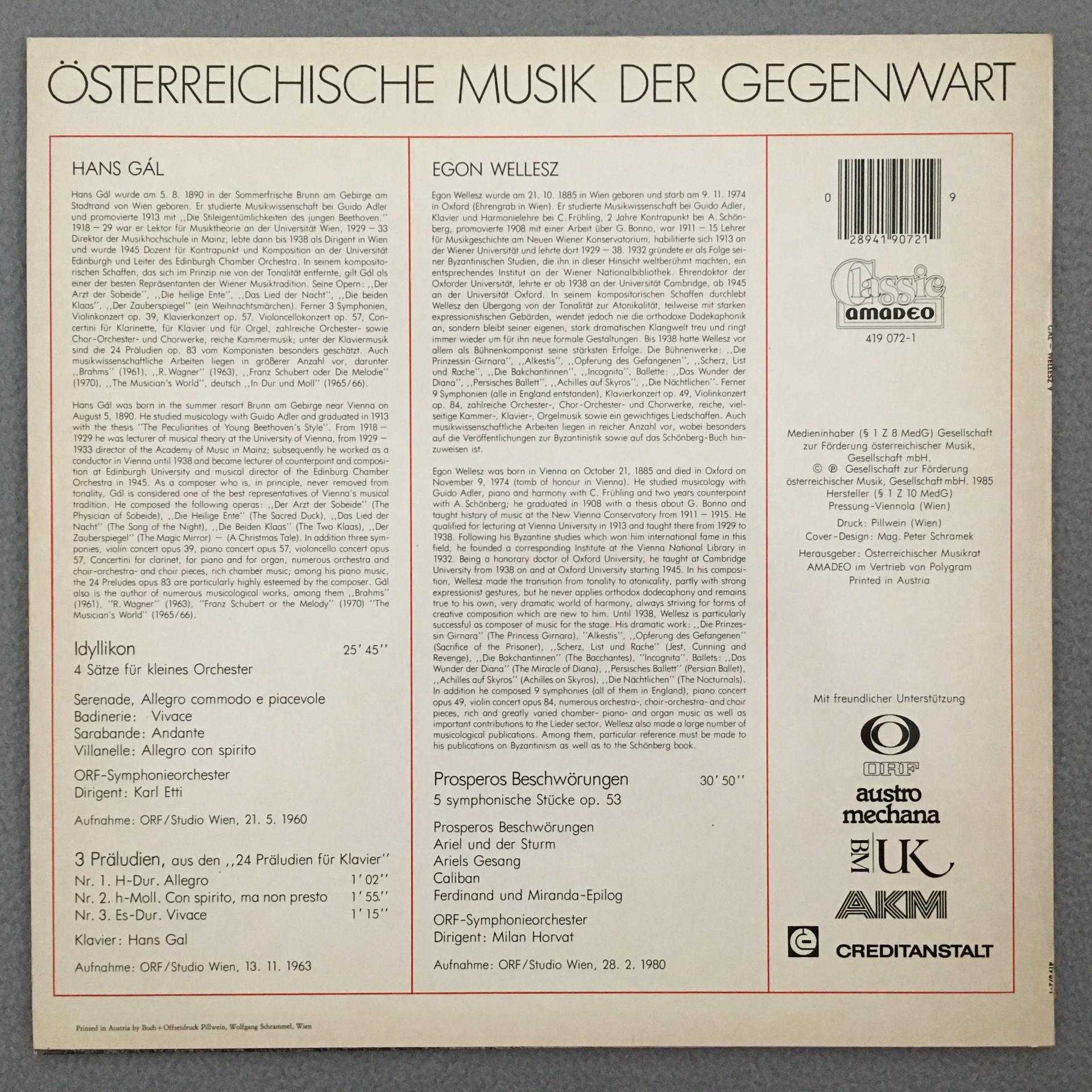 J824 Gal Serenade Preludes Wellesz Symphonic Pieces Horvath Amadeo 419 072-1 St