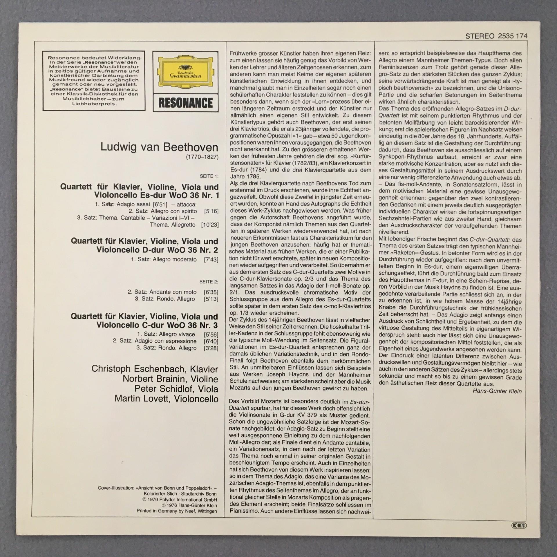 U078 Beethoven Piano Quartets Eschenbach Amadeus Quartet DGG 2535 174 Stereo