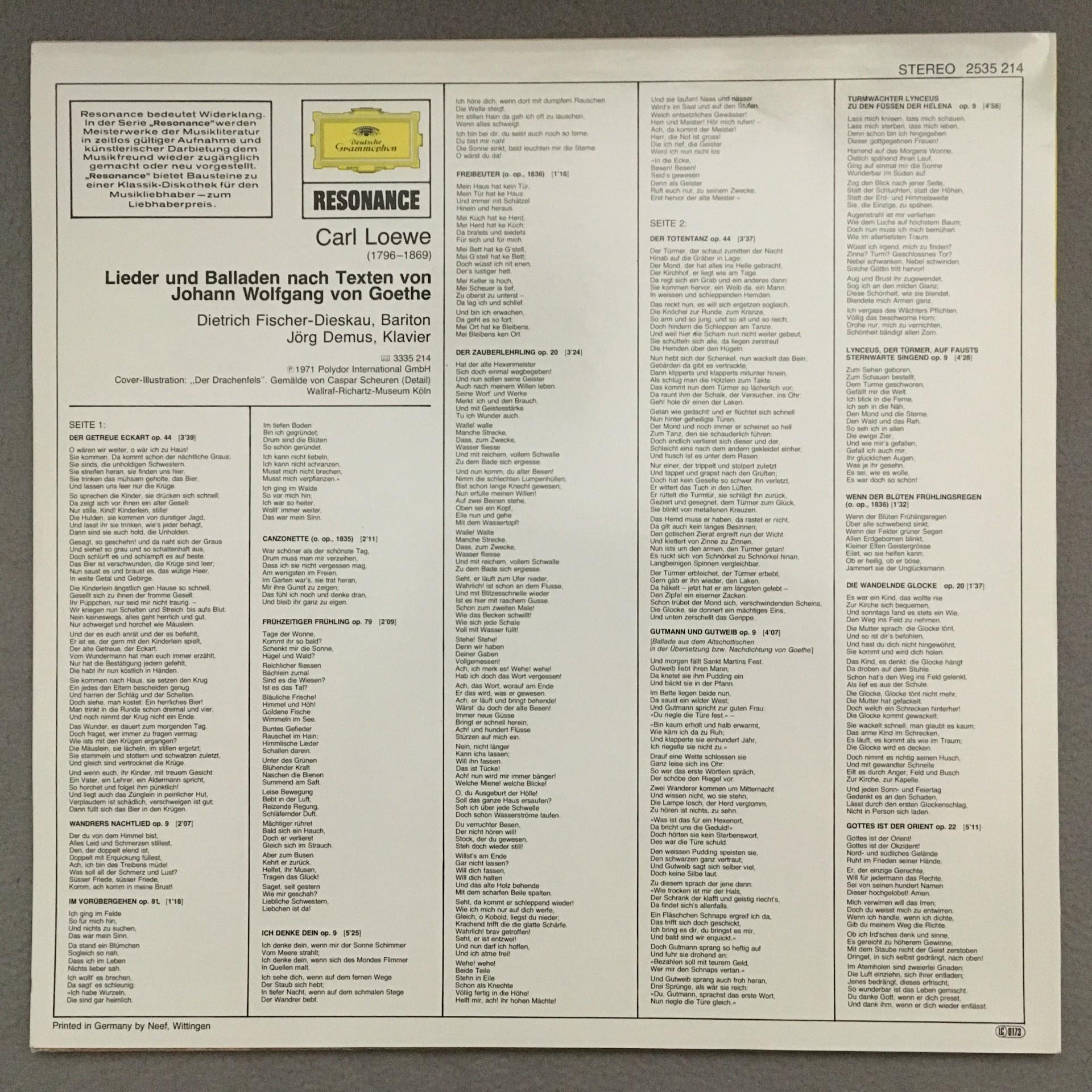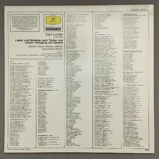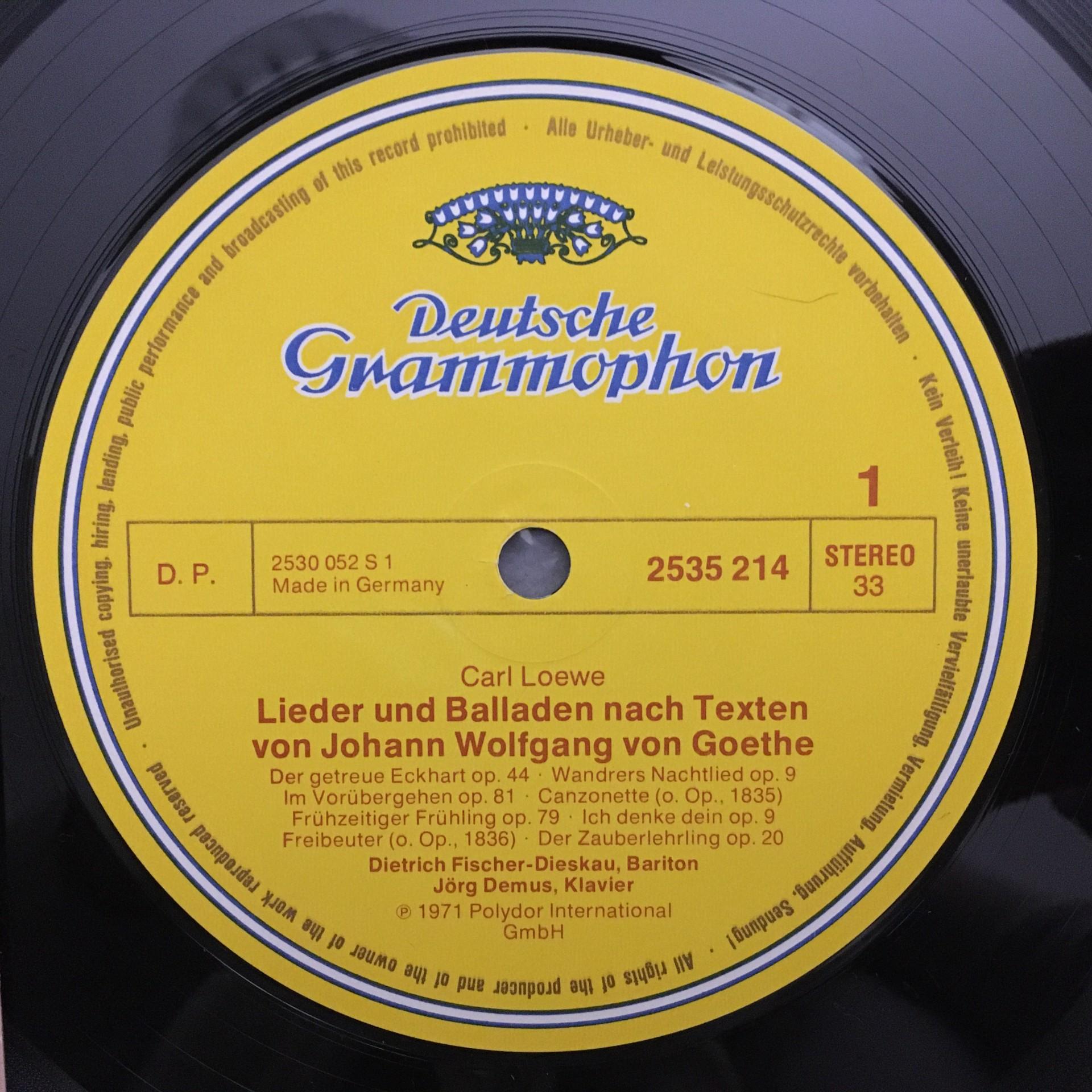 U079 Loewe Ballades & Songs Fischer-Dieskau Demus DGG 2535 214 Stereo