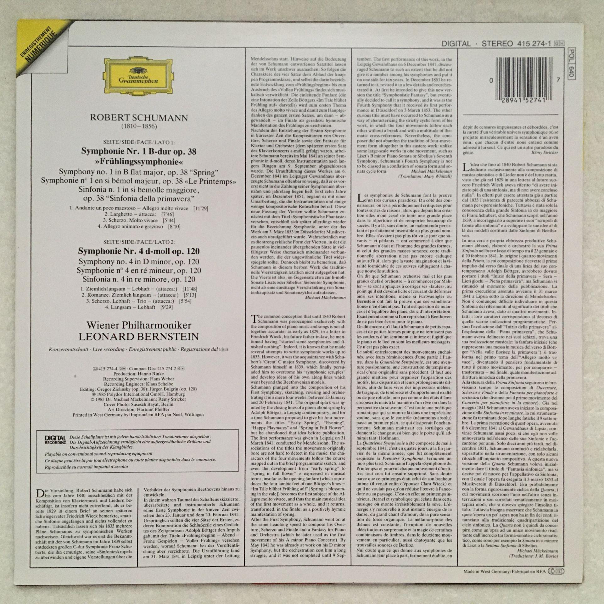 U081 Schumann Symphonies No.1 & 4 Bernstein DGG 415 274-1 Digital Stereo