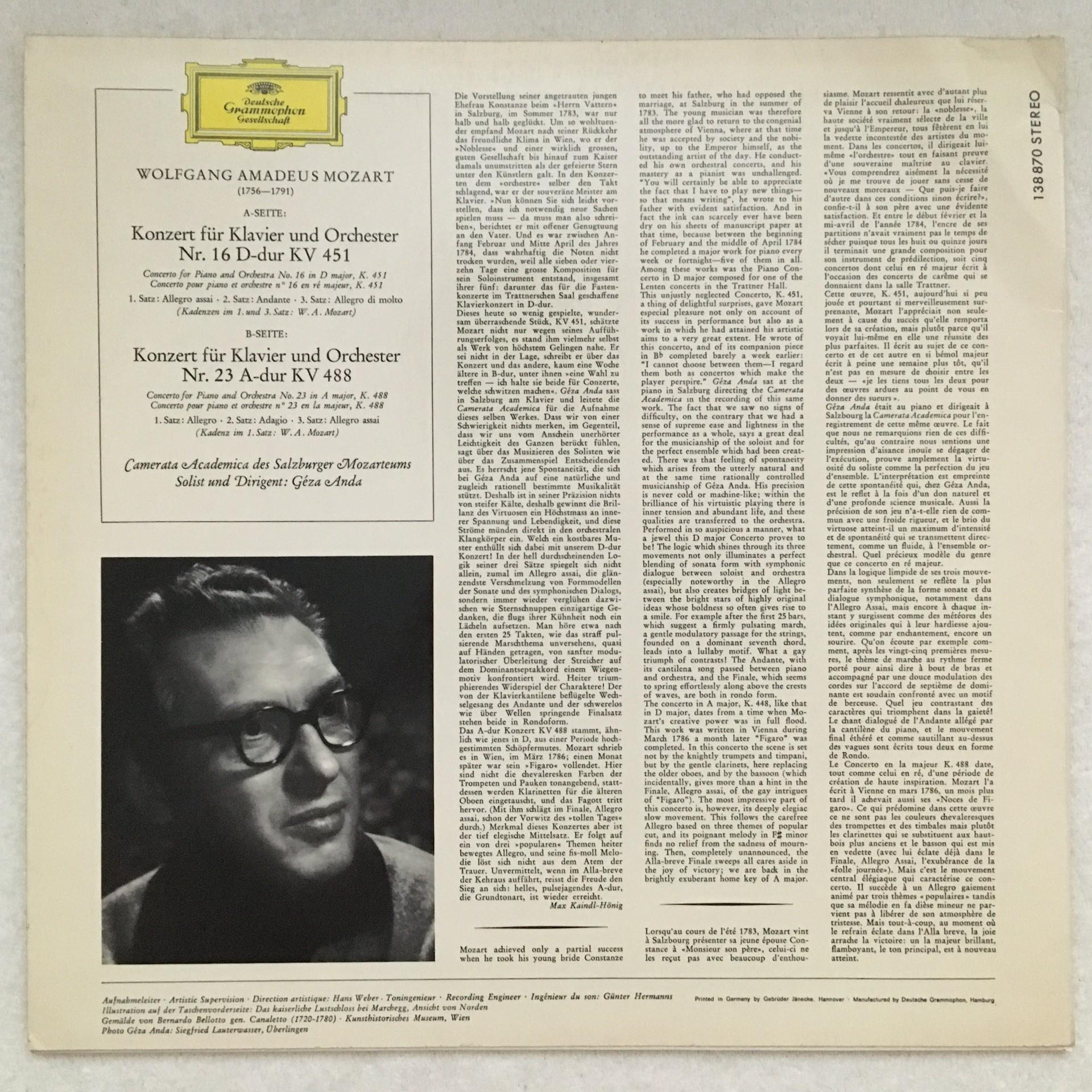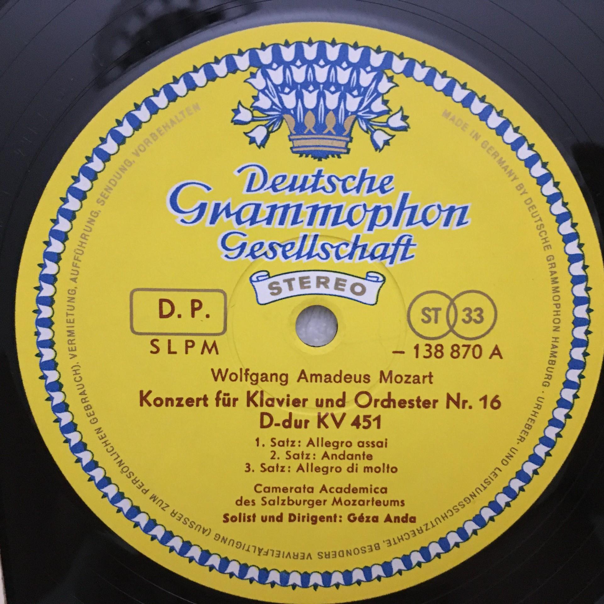 U085 Mozart Piano Concertos Anda DGG 138 870 SLPM Stereo Tulip