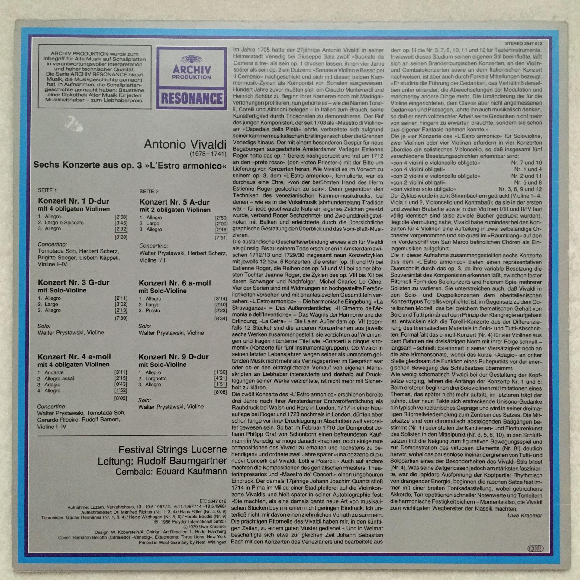 U093 Vivaldi 6 Concertos Op.3 Baumgartner DGG Archiv 2547 012 Stereo