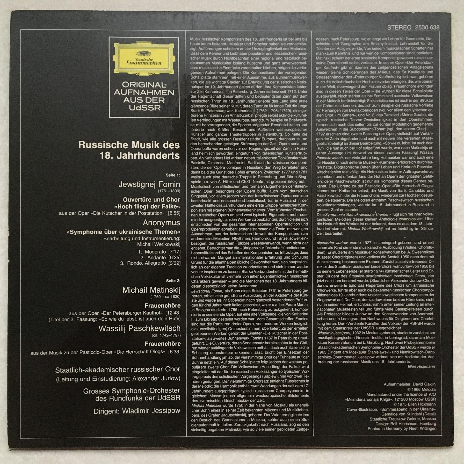U100 Russian Music from 18th Century Jessipow DGG 2530 638 Stereo