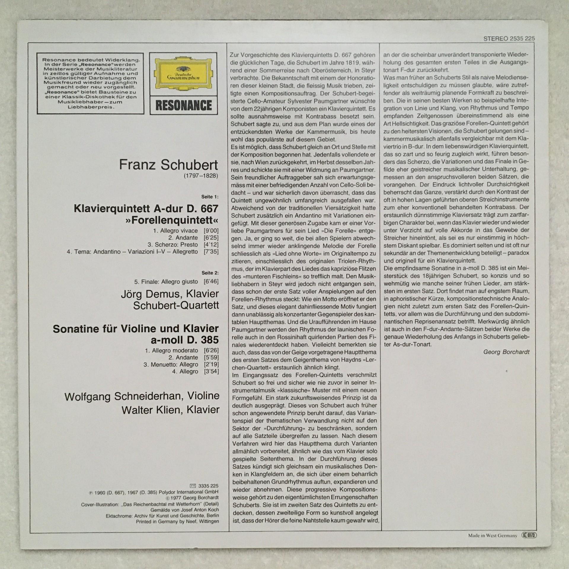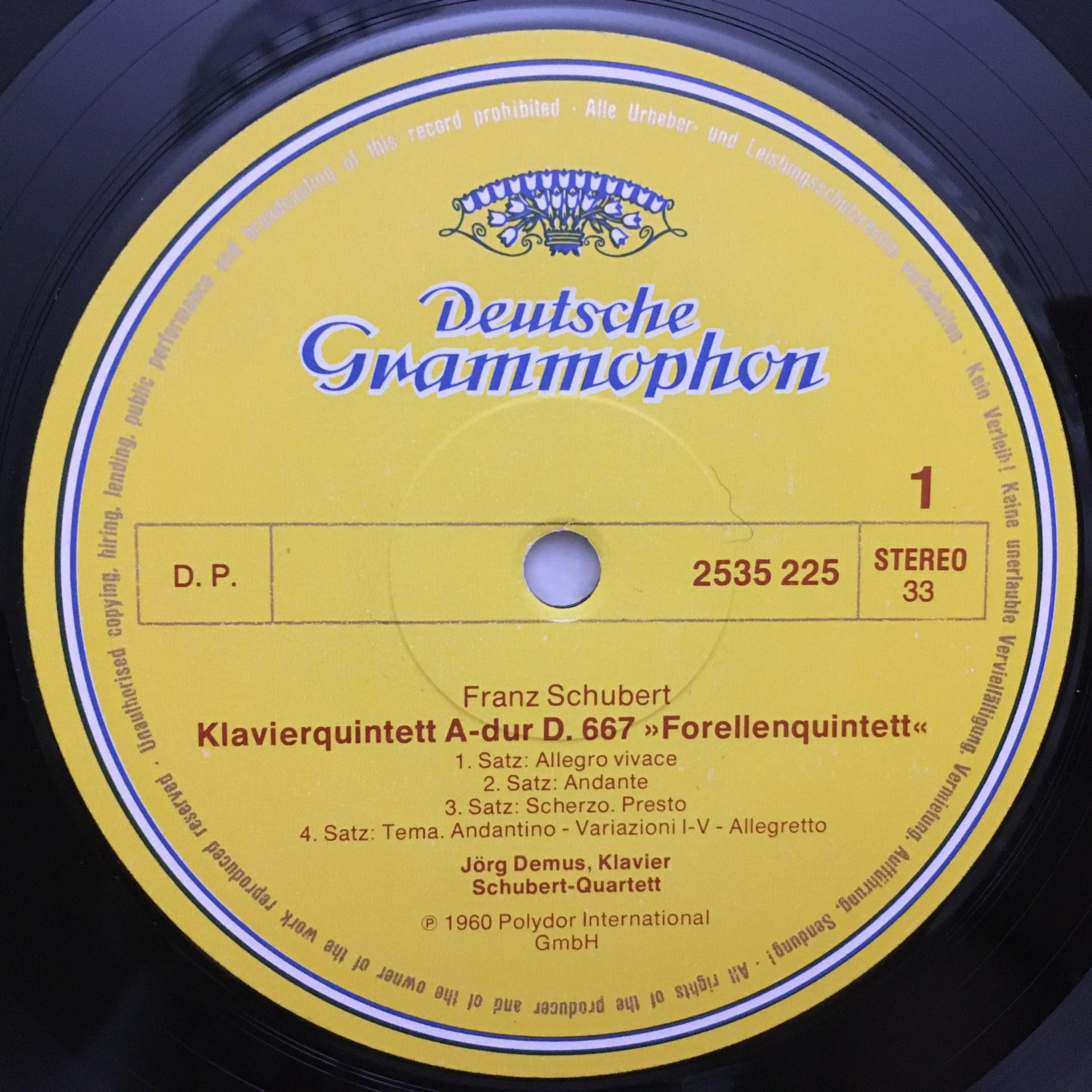 U103 Schubert Trout Quintet Demus Schneiderhan Klien DGG 2535 225 Stereo