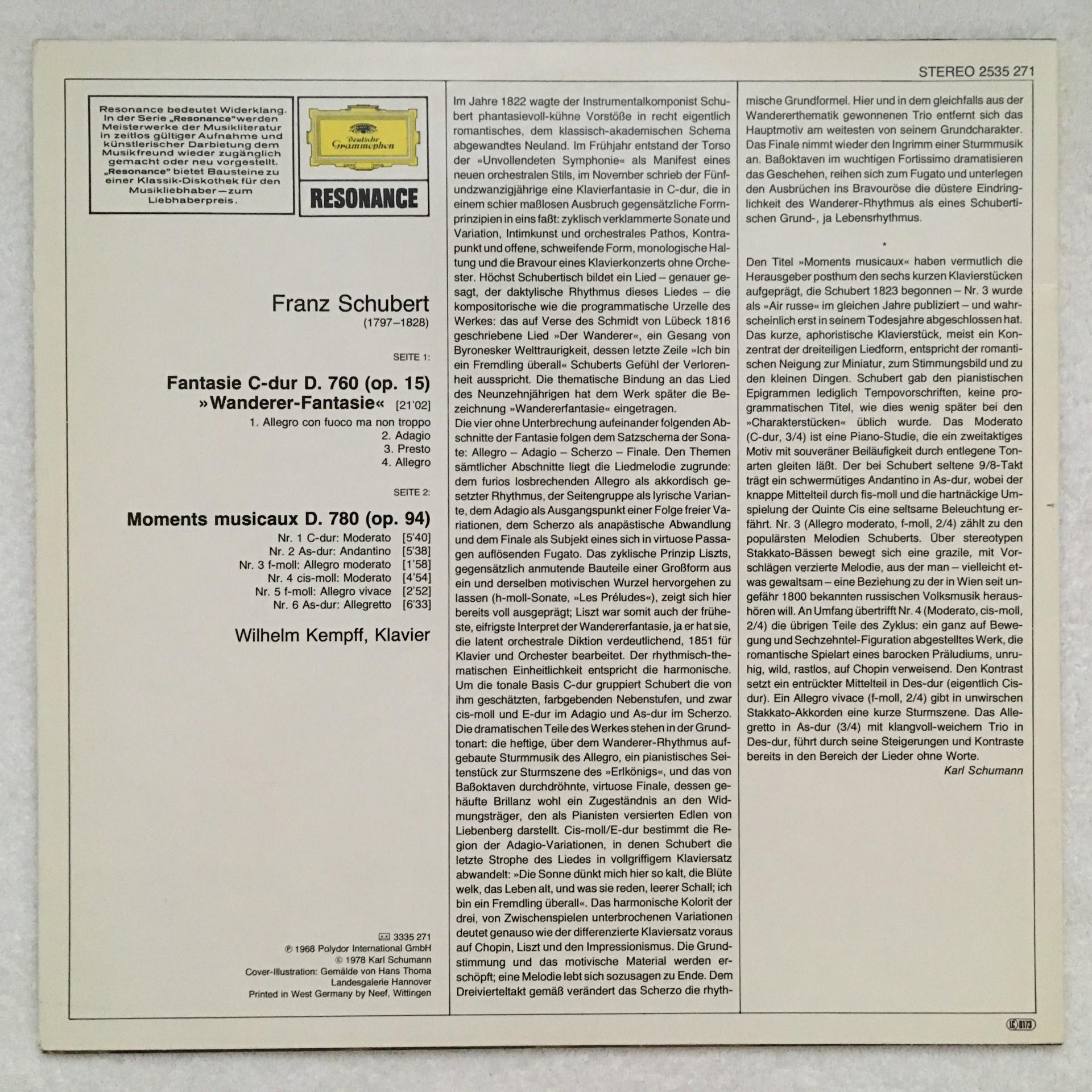 U104 Schubert Fantasy Moments Musicaux Kempff Piano DGG 2535 271 Stereo
