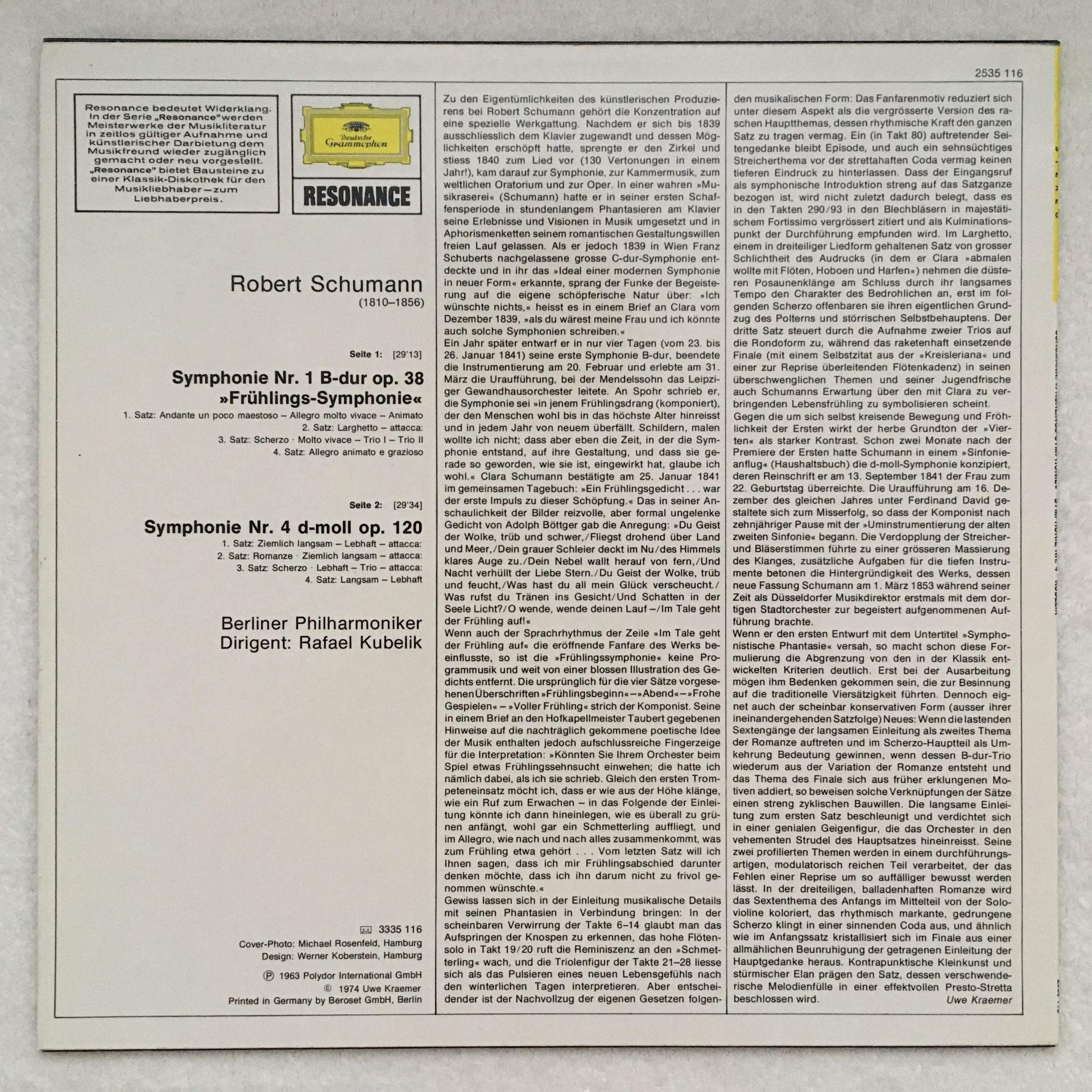 U106 Schumann Symphonies No.1 & No.4 Kubelik BPO DGG 2535 116 Stereo