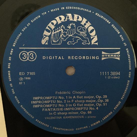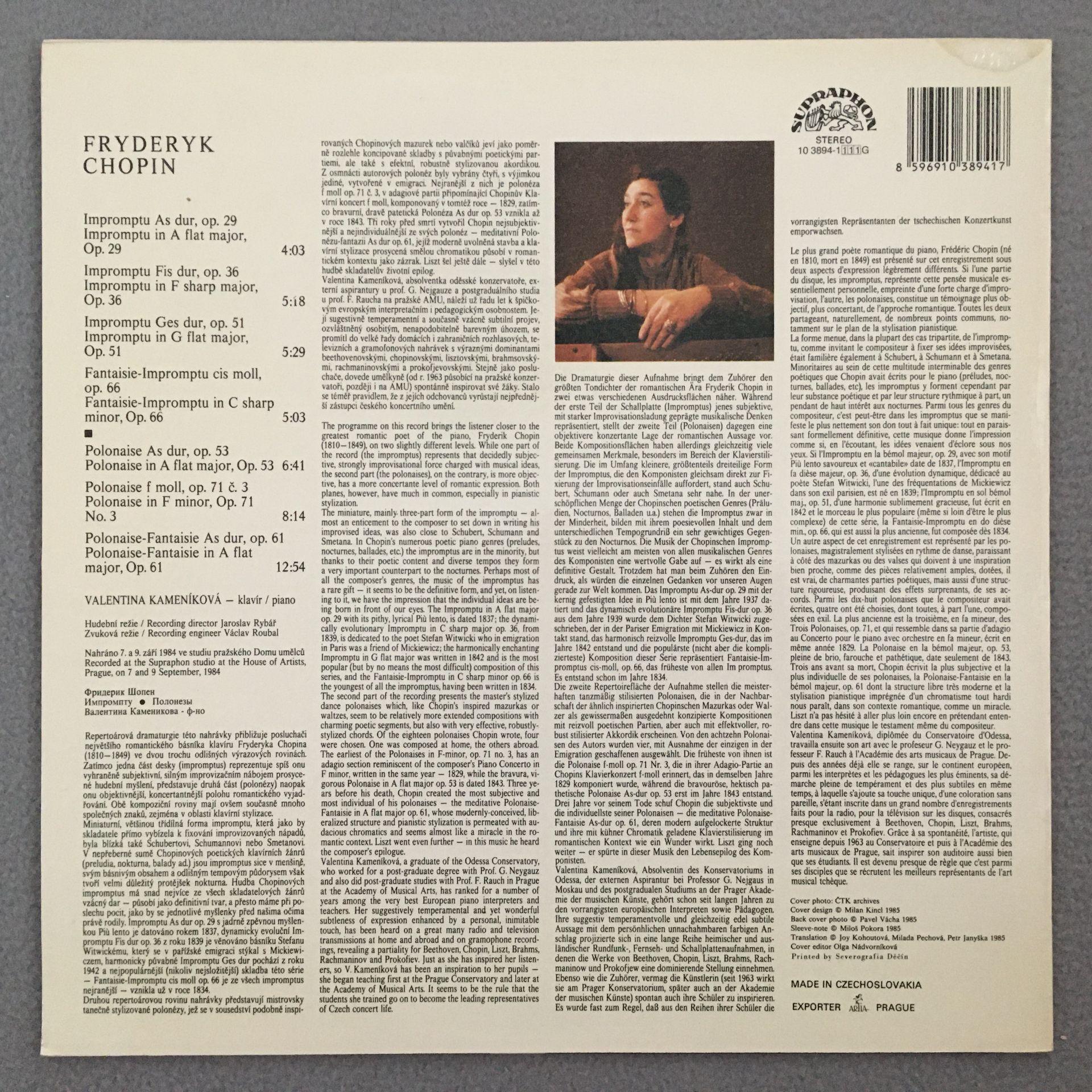J838 Chopin Polonaises Impromptus Kamenikova Piano Supraphon 10 3894-1 Stereo