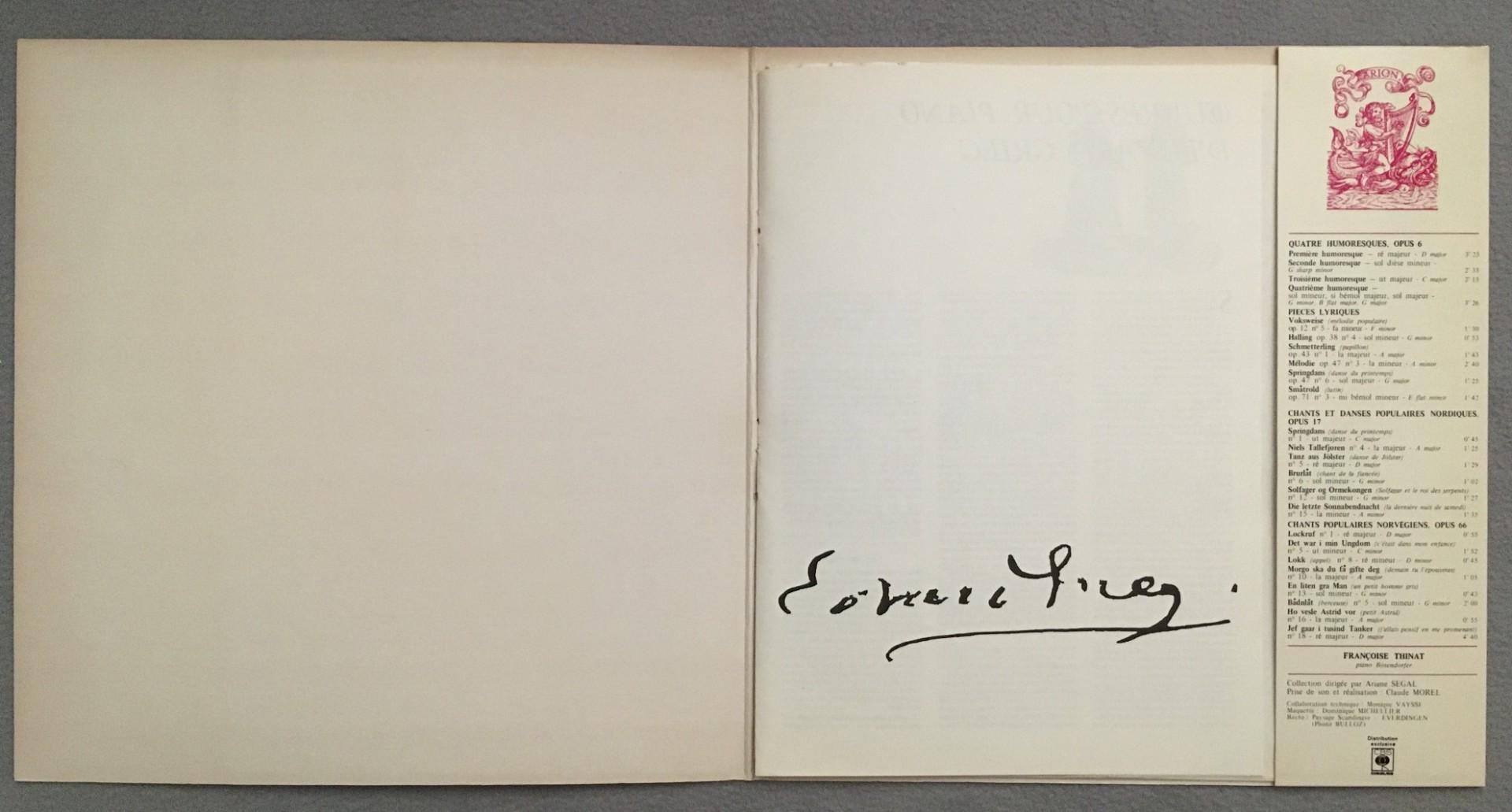 J849 Grieg Lyric Pieces Chants Thinat Piano Arion ARN 38 268 Stereo