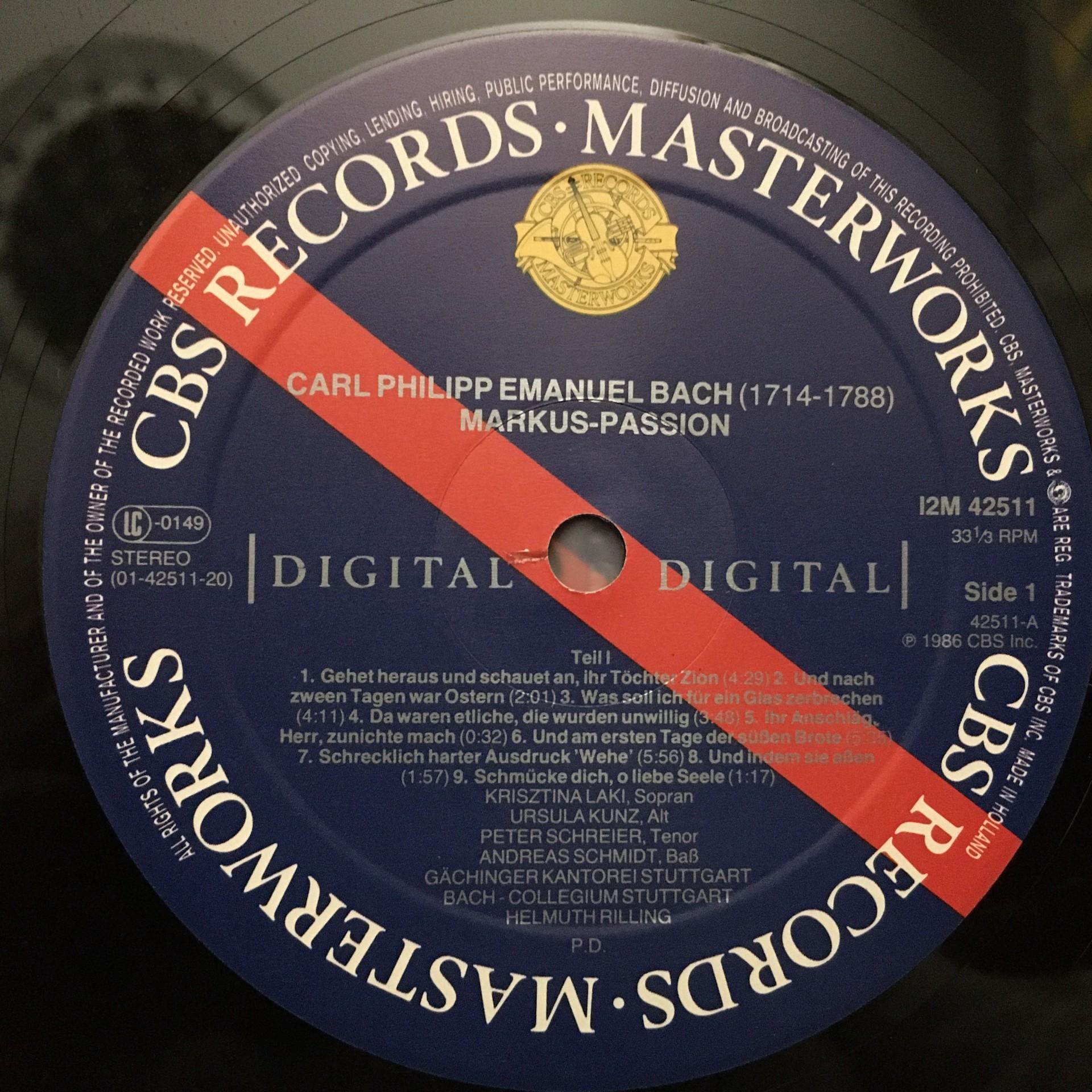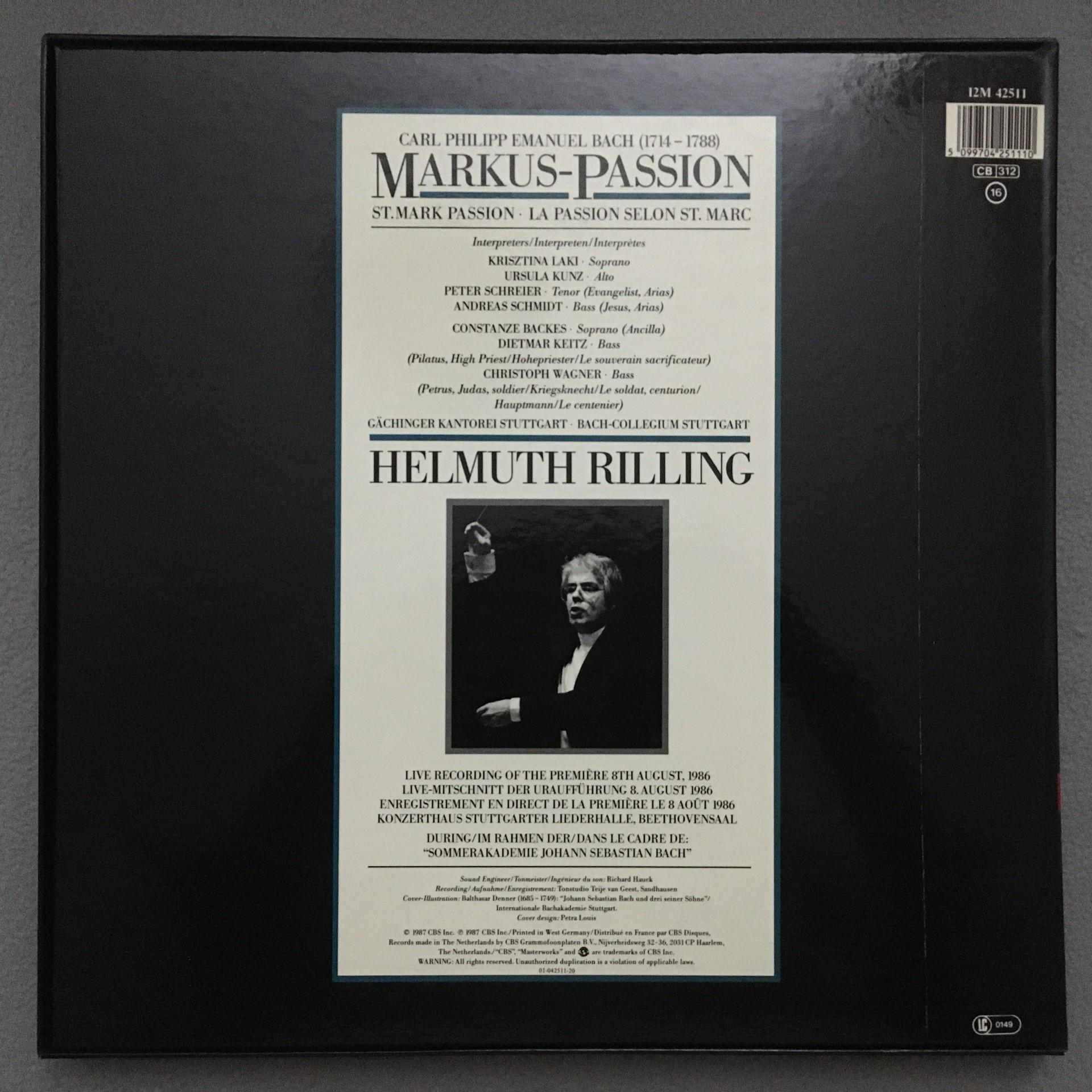 G109 Bach St. Mark Passion Schreier Rilling 2LP CBS I2M 42511 Digital Stereo