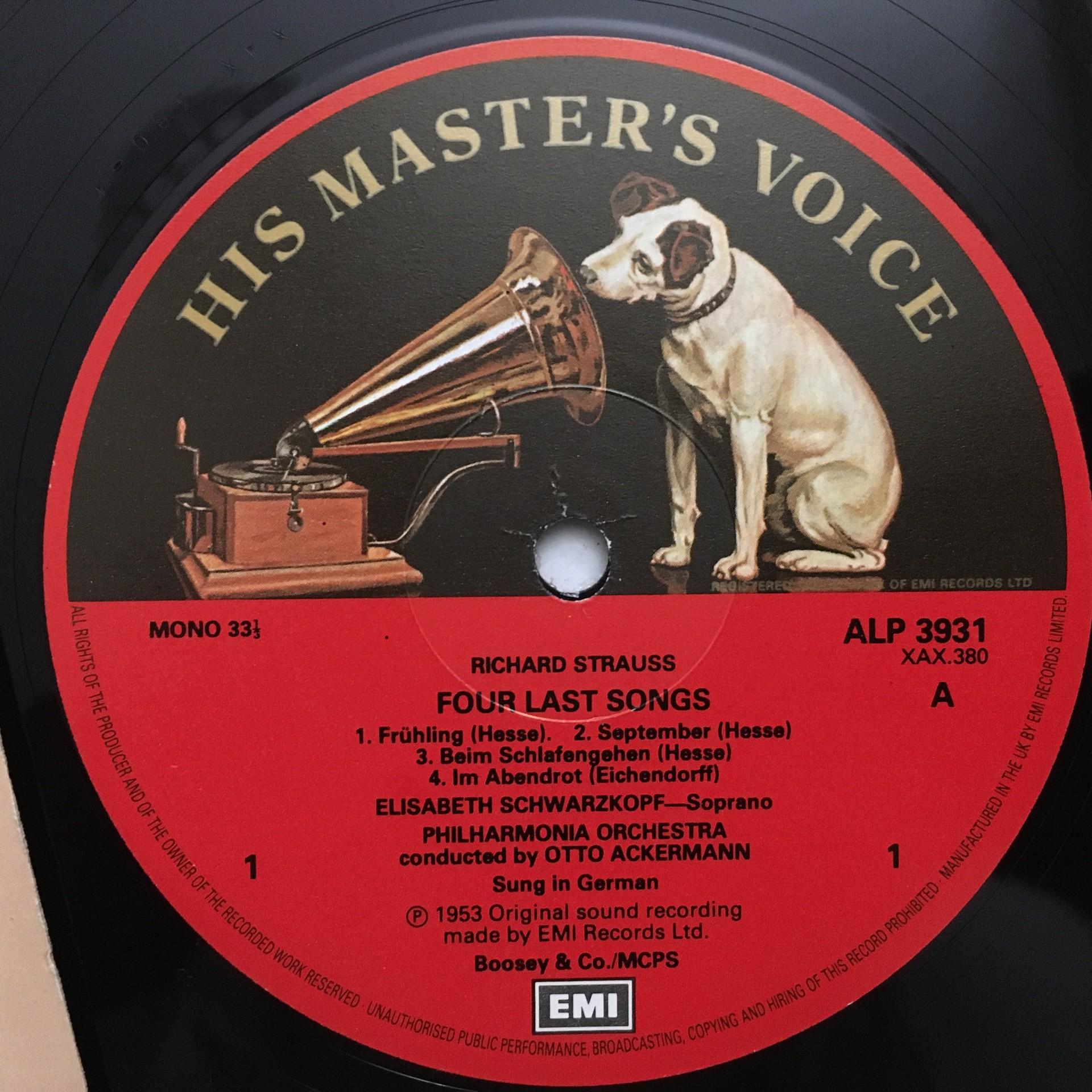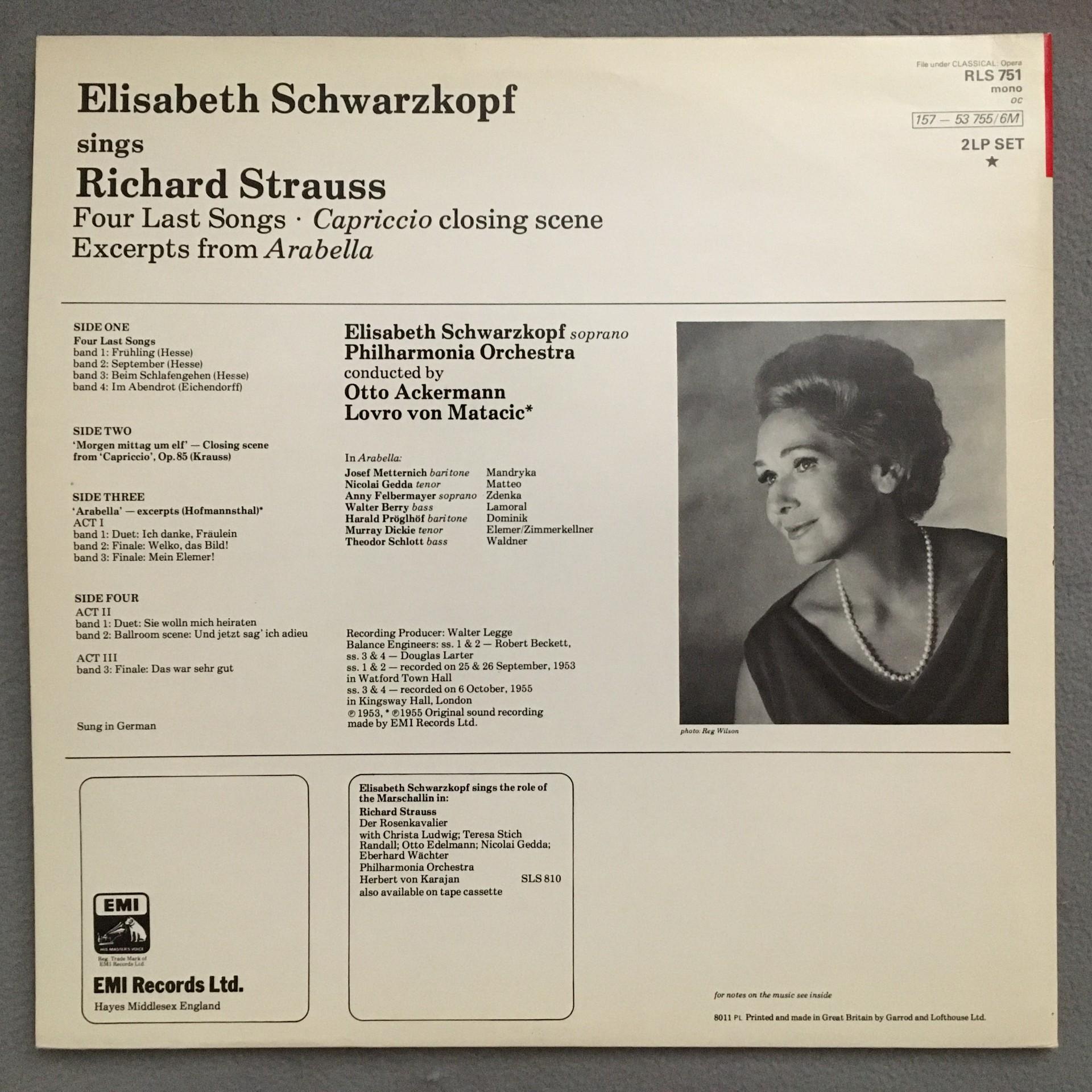 T931 R. Strauss 4 Last Songs Schwarzkopf Ackermann Matacic 2LP EMI RLS 751