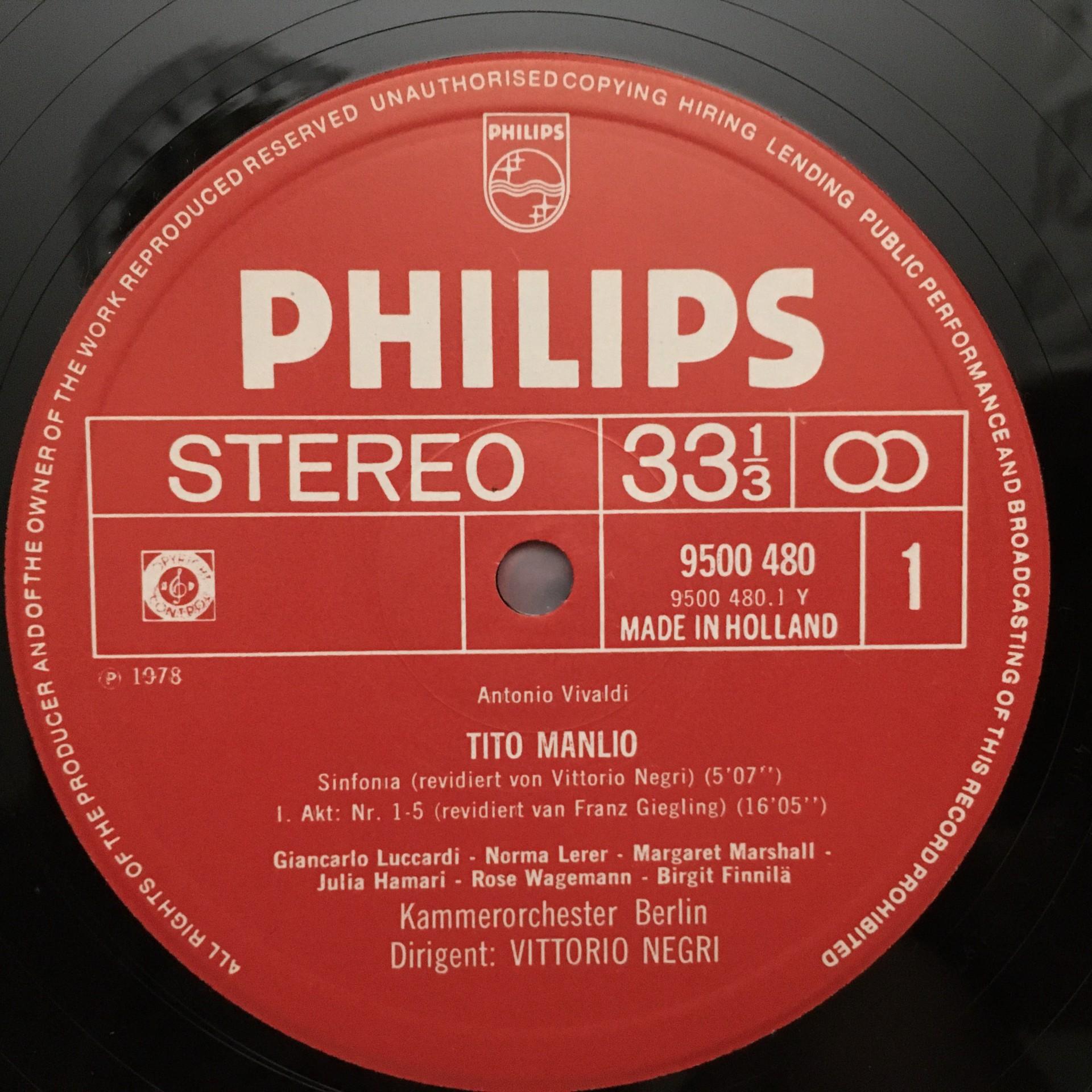 E470 Vivaldi Tito Manlio Negri 5LP Philips 6769 004 Stereo