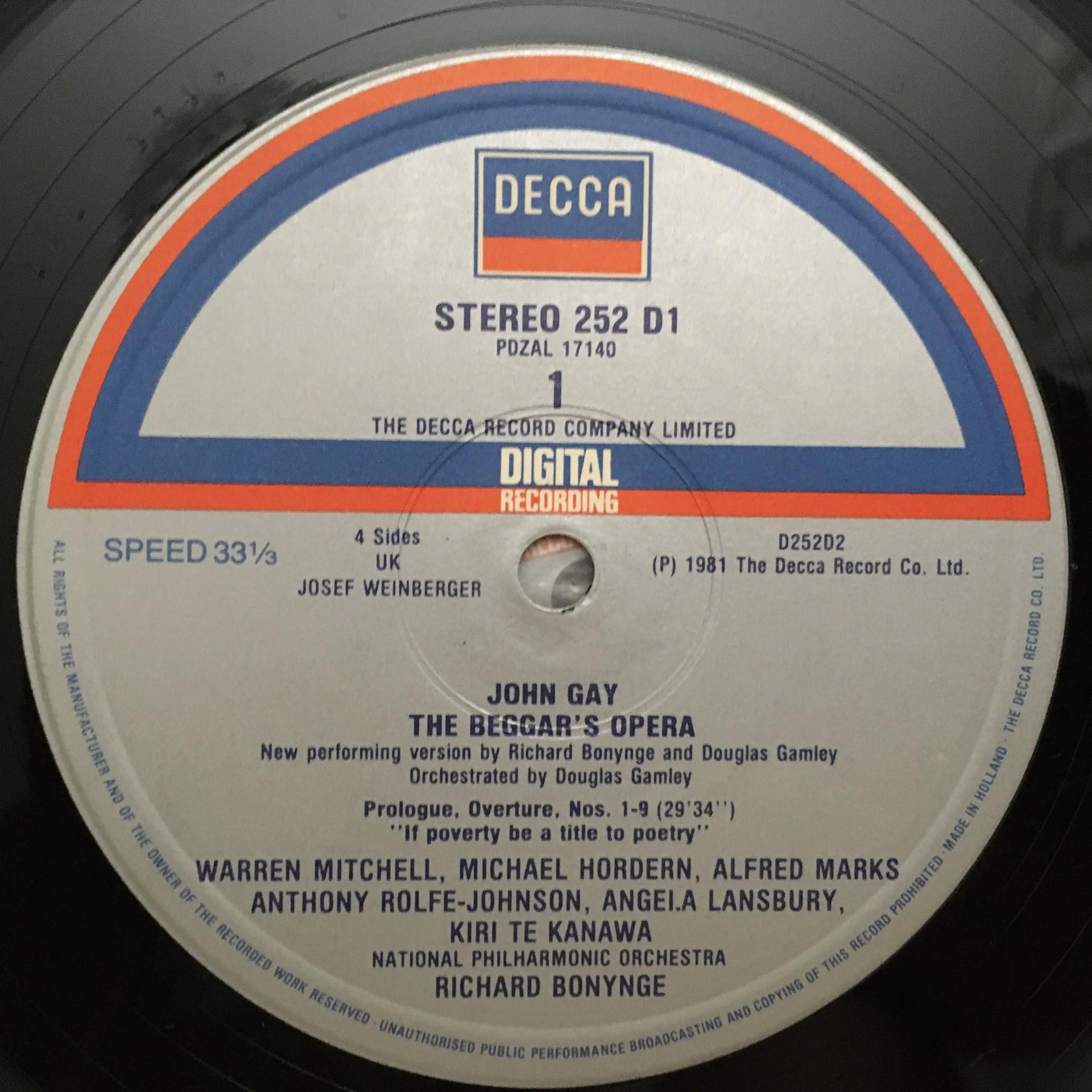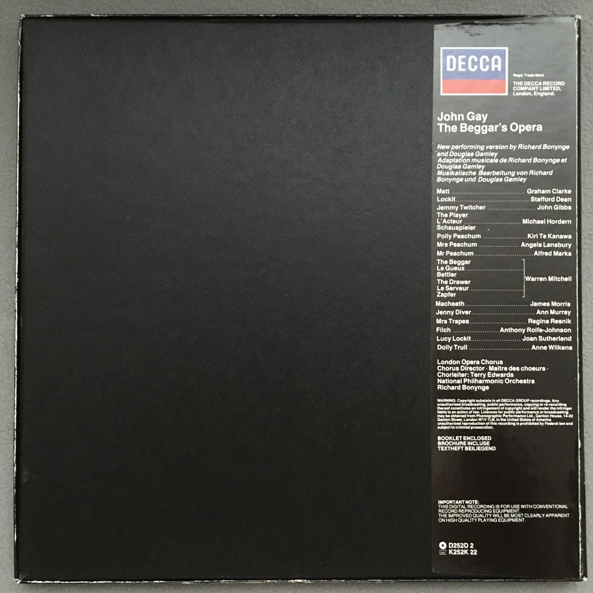 E472 John Gay The Beggar's Opera Sutherland Bonynge 2LP Decca D252D Digital St