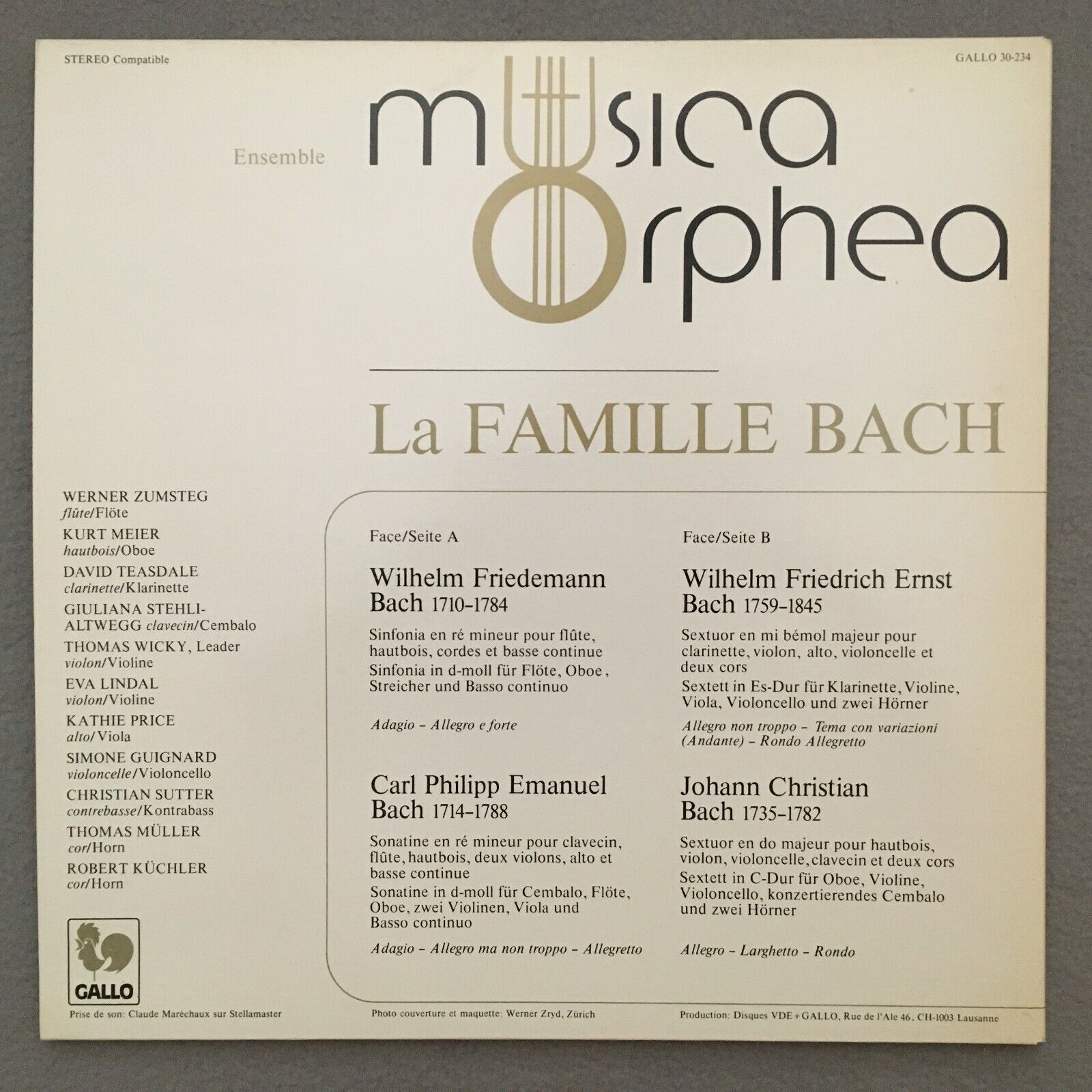 V358 The Family Bach Symphony Sonatine Sextets Zumsteg Gallo 30-234 Stereo