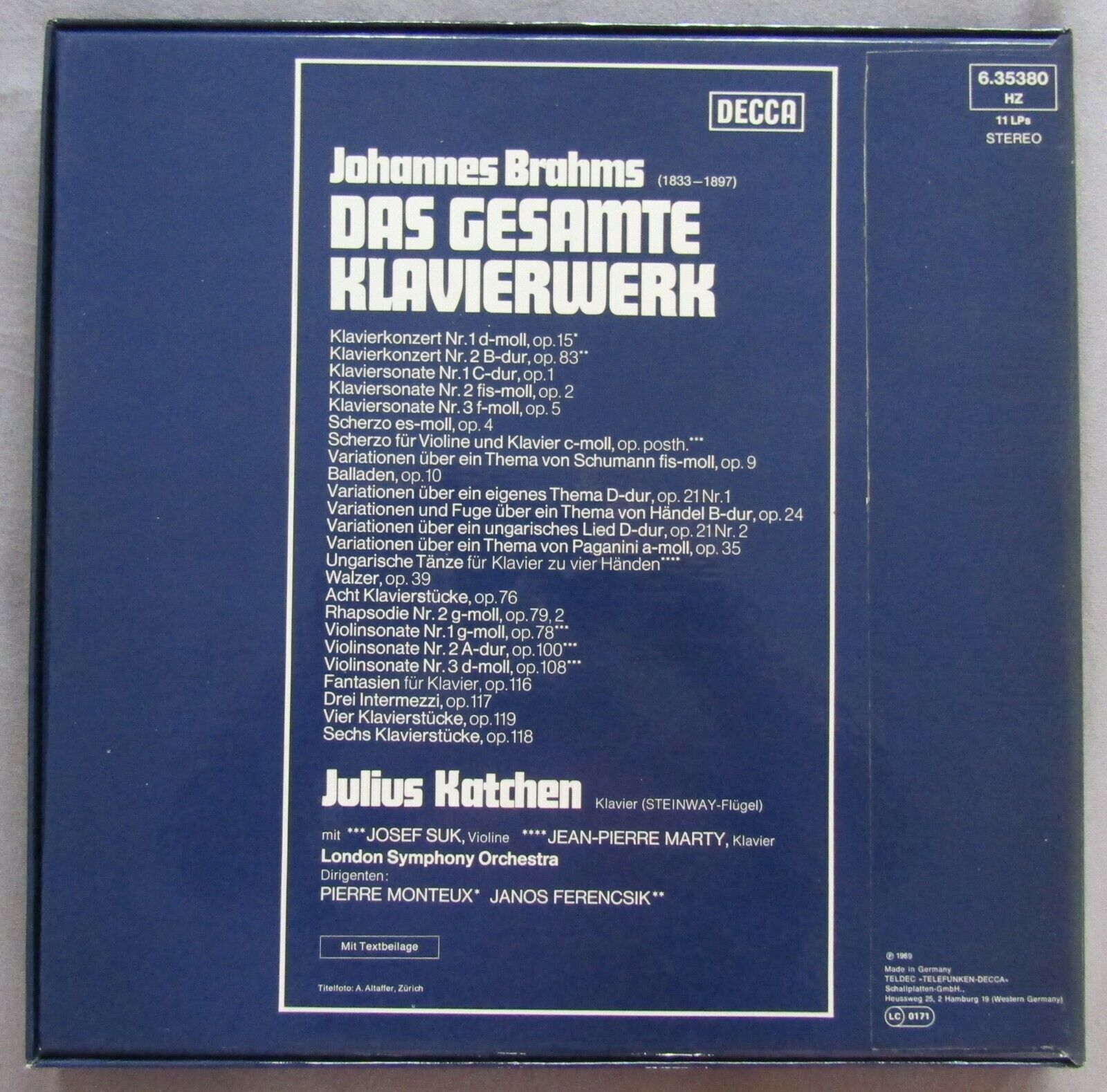G440 Brahms The Complete Piano Work Katchen Suk 11LP DECCA 6.35380 HZ Stereo
