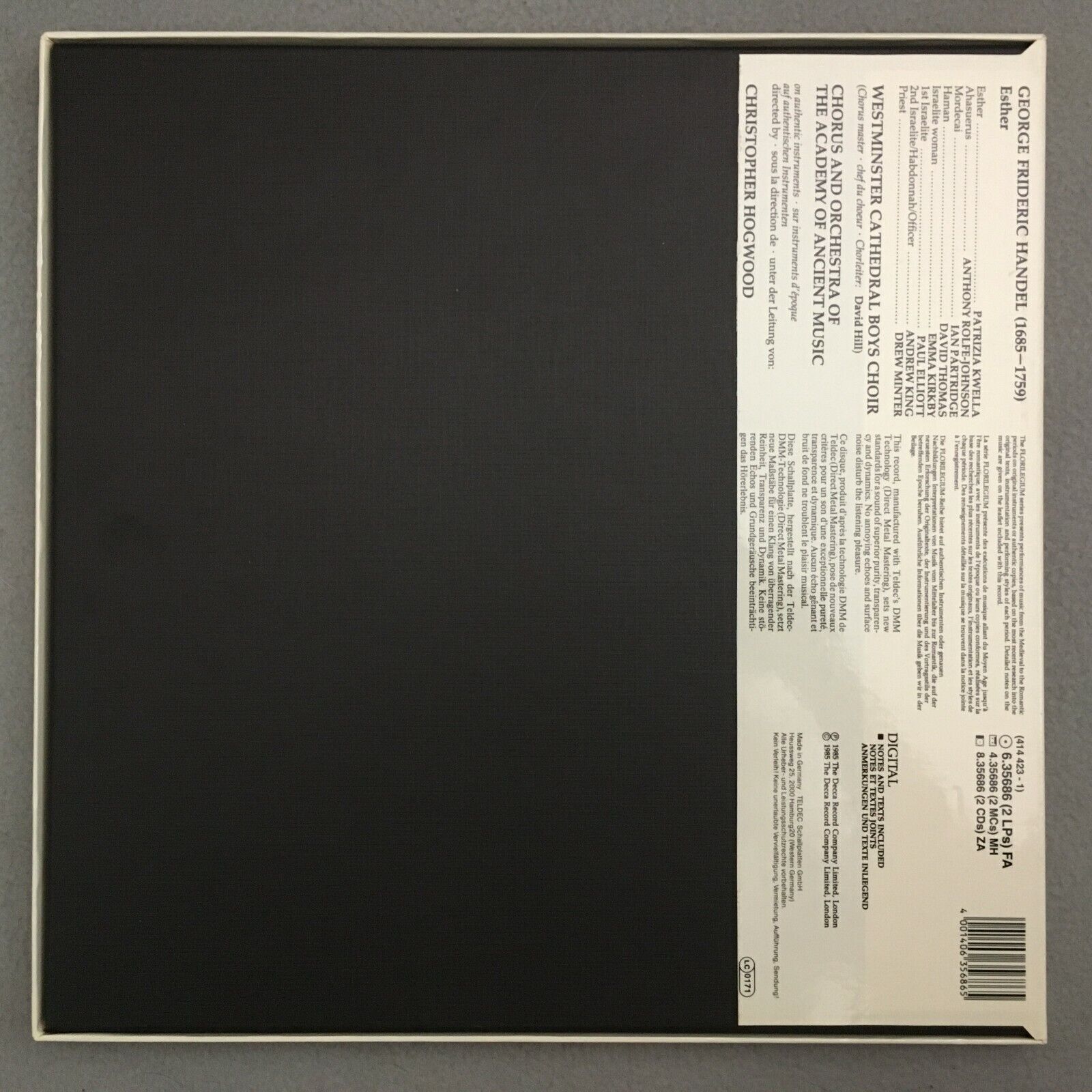 B375 Handel Esther King Thomas Hogwood 2LP DECCA 6.35686 FA Digital Stereo
