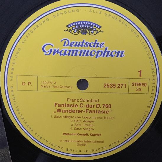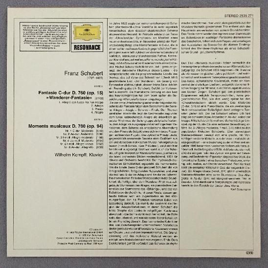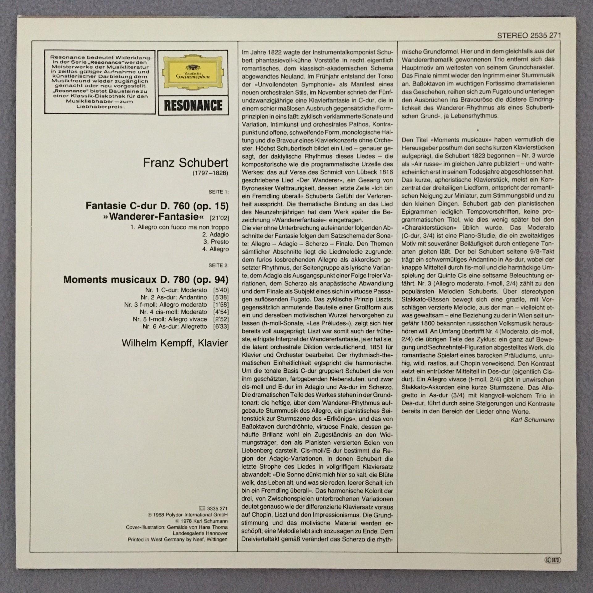 J870 Schubert Fantasy Moments Musicaux Kempff Piano DGG 2535 271 Stereo