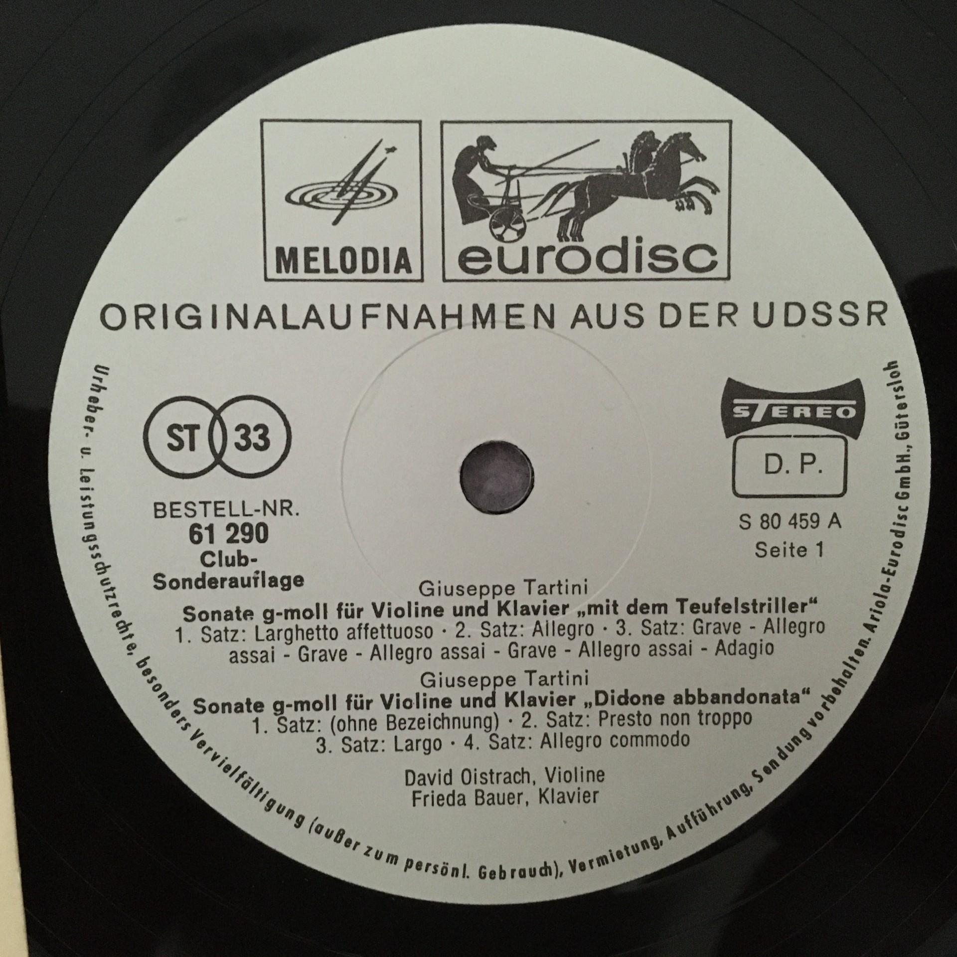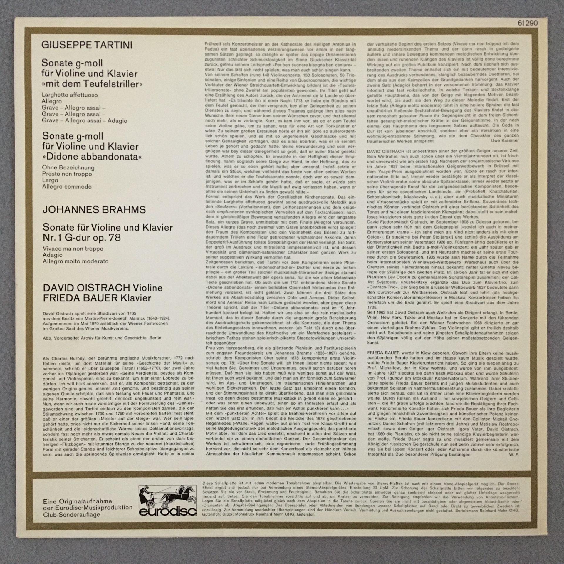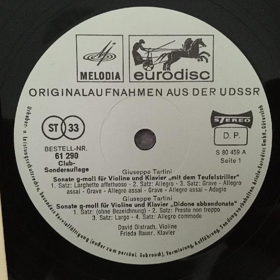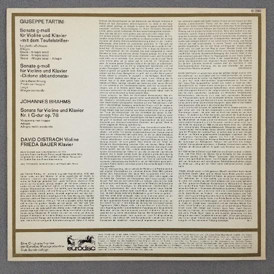 J873 Tartini Devils Trill Brahms Sonatas Oistrakh Bauer Eurodisc 61 290 Stereo