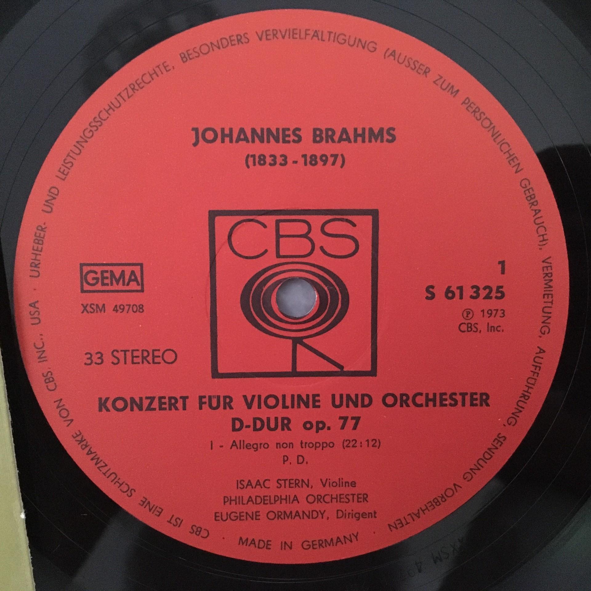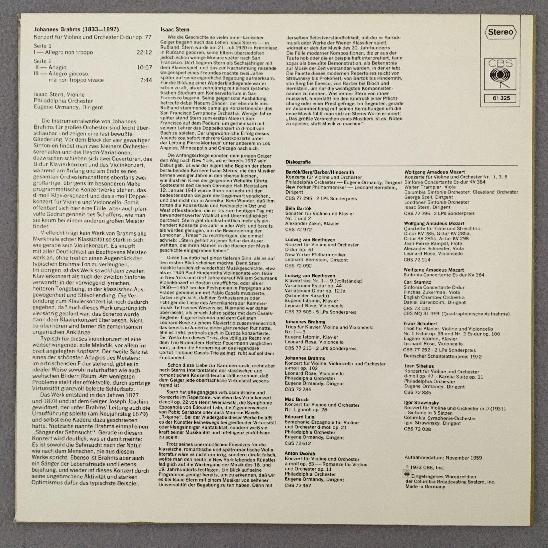J876 Brahms Violin Concerto Stern Ormandy CBS 61 325 Stereo