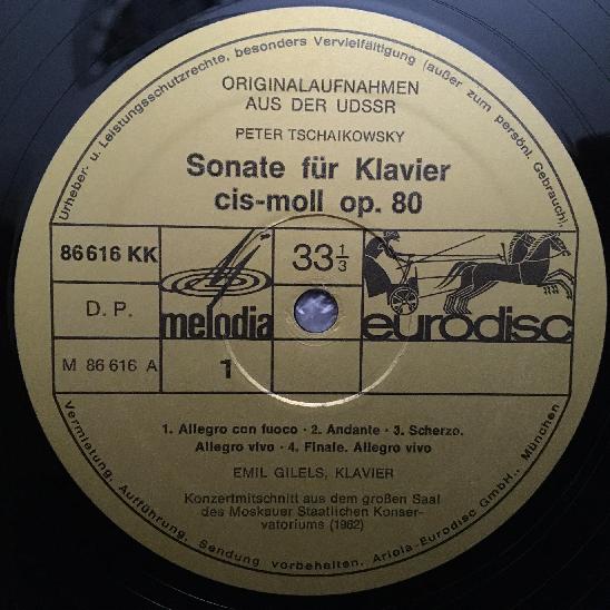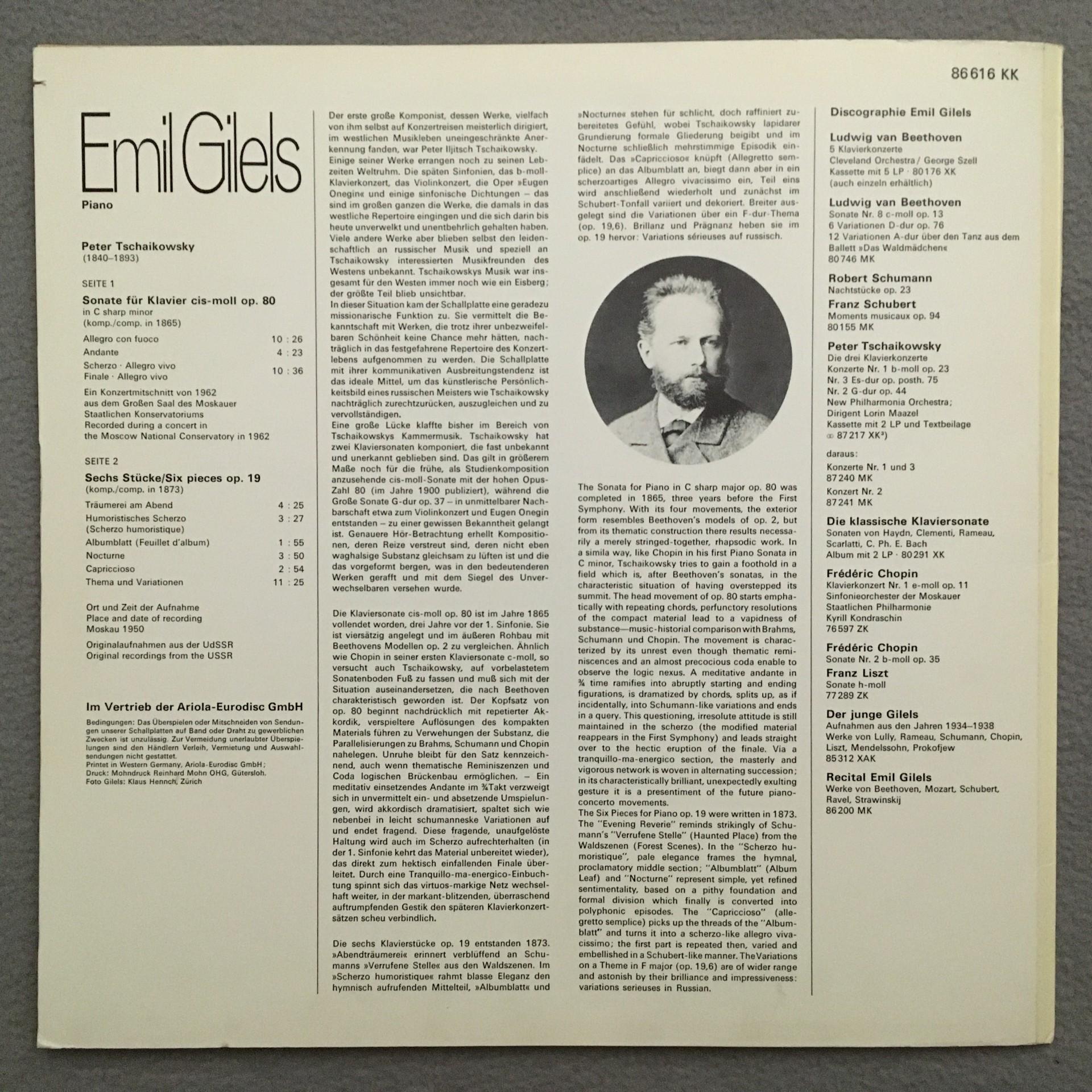 J901 Tchaikovsky Sonata 6 Pieces Gilels Piano Eurodisc 86 616 KK