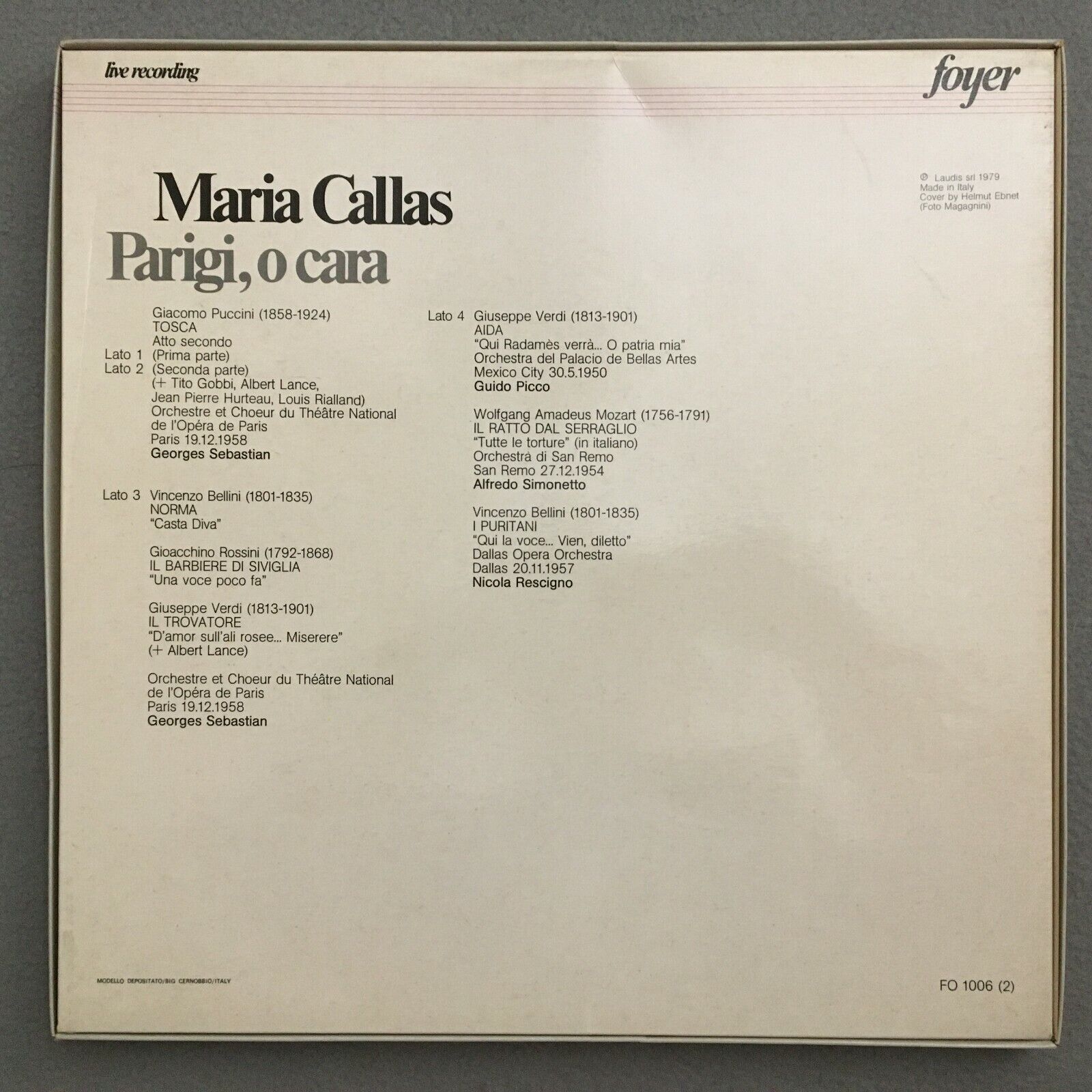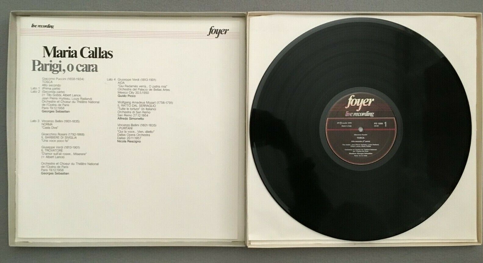 B889 Callas Parigi, o Cara Puccini Tosca Sebastian 2LP FOYER FO 1006 (2) Live