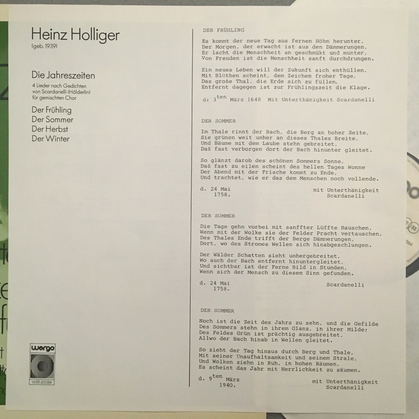 V509 Holliger String Quartet Grimmer Cello Gottwald WERGO WER 60 084 Stereo