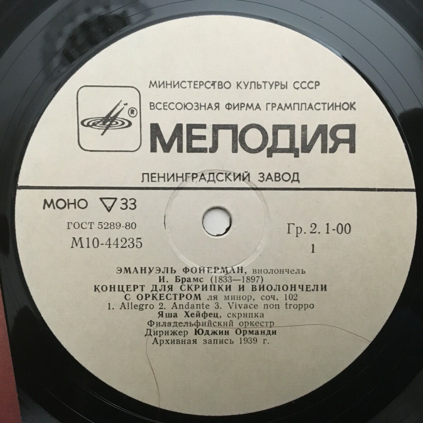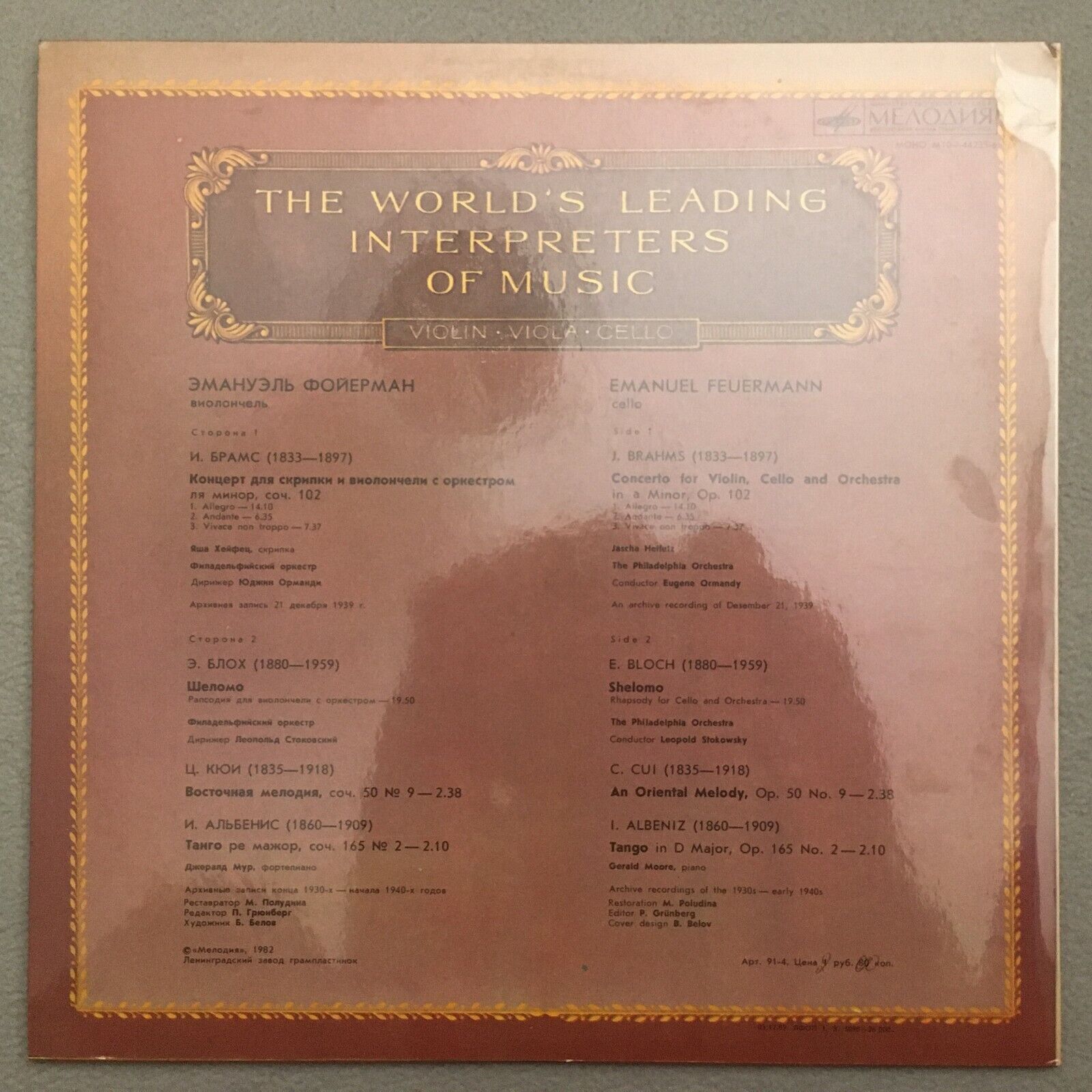 V523 Brahms Violin Cello Concerto Feuermann Albeniz Tango Melodiya M10-44235-6