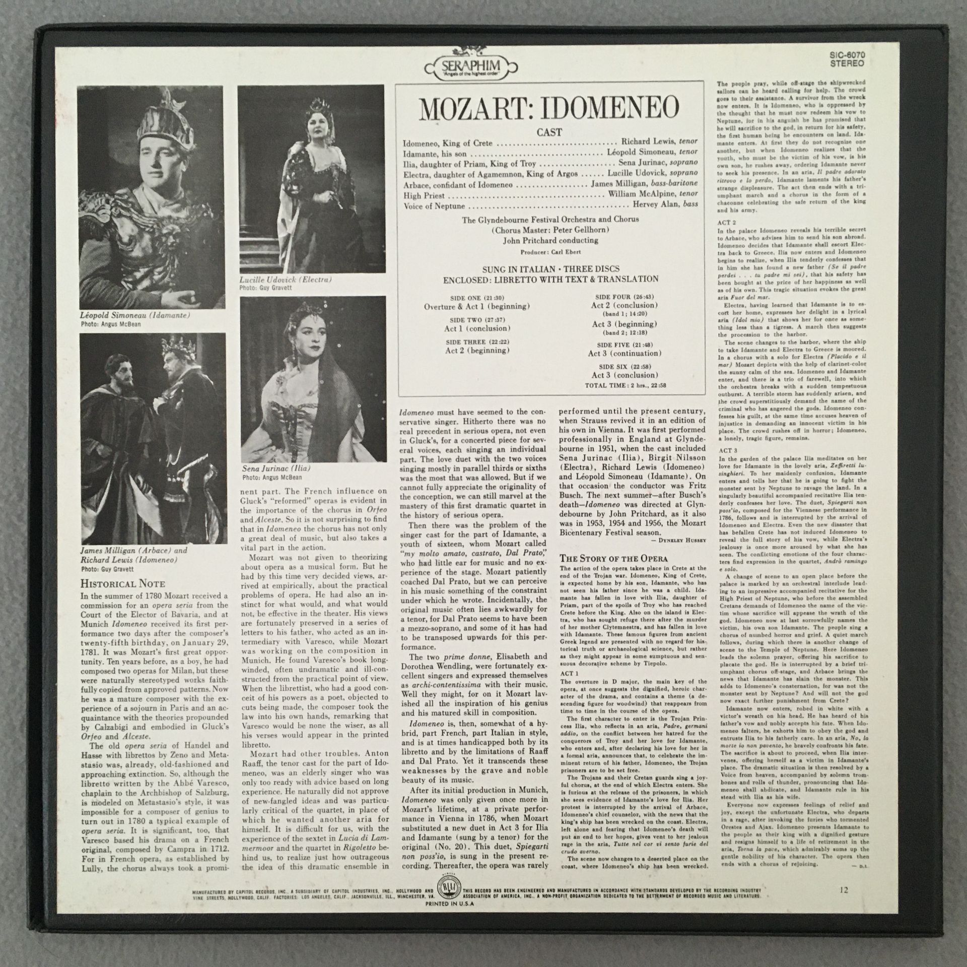 C677 Mozart Idomeneo Lewis Simoneau Pritchard 3LP Seraphim SIC-6070 Stereo