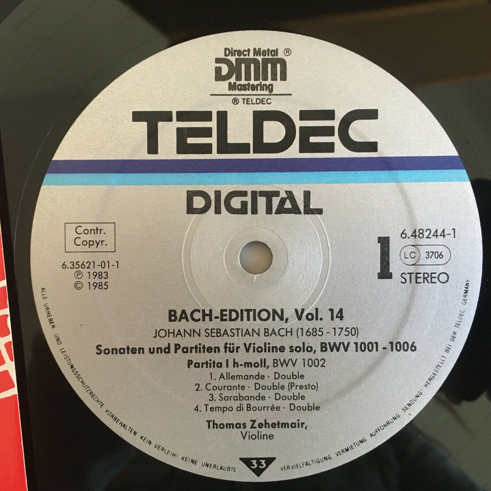 V542 Bach Sonatas and Partitas for Violin Zehetmair 2LP Teldec 6.48244 DM Digit